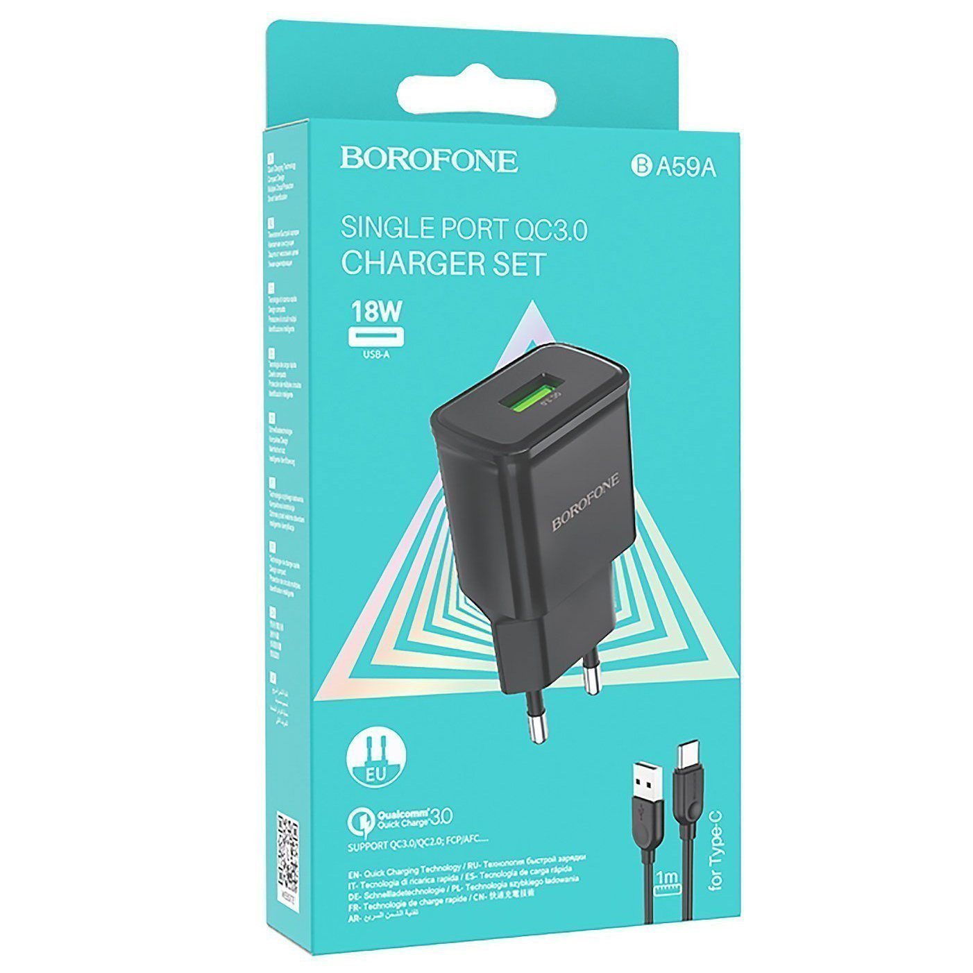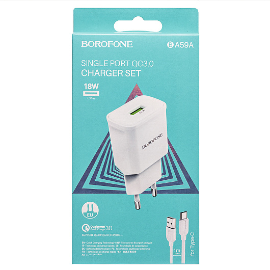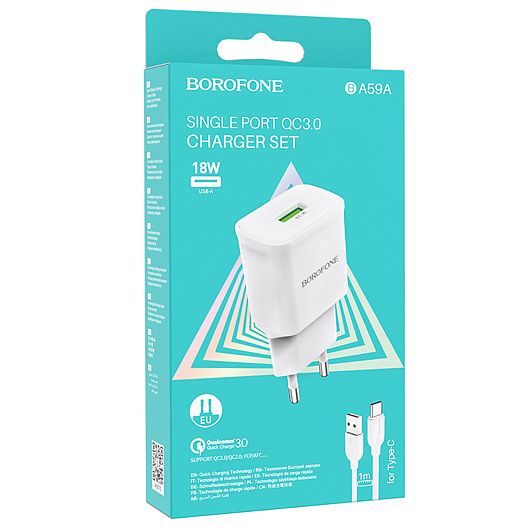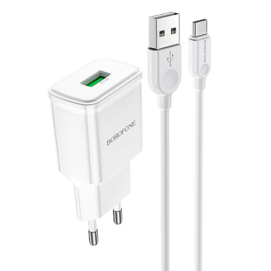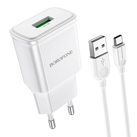 Адаптер Сетевой с кабелем Borofone BA59A Heavenly QC3.0 USB 3A/18W (USB/Type-C) (black)