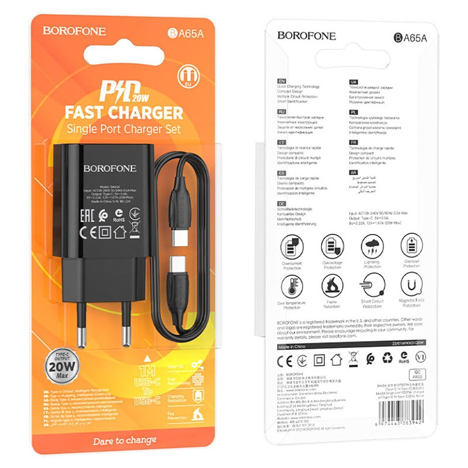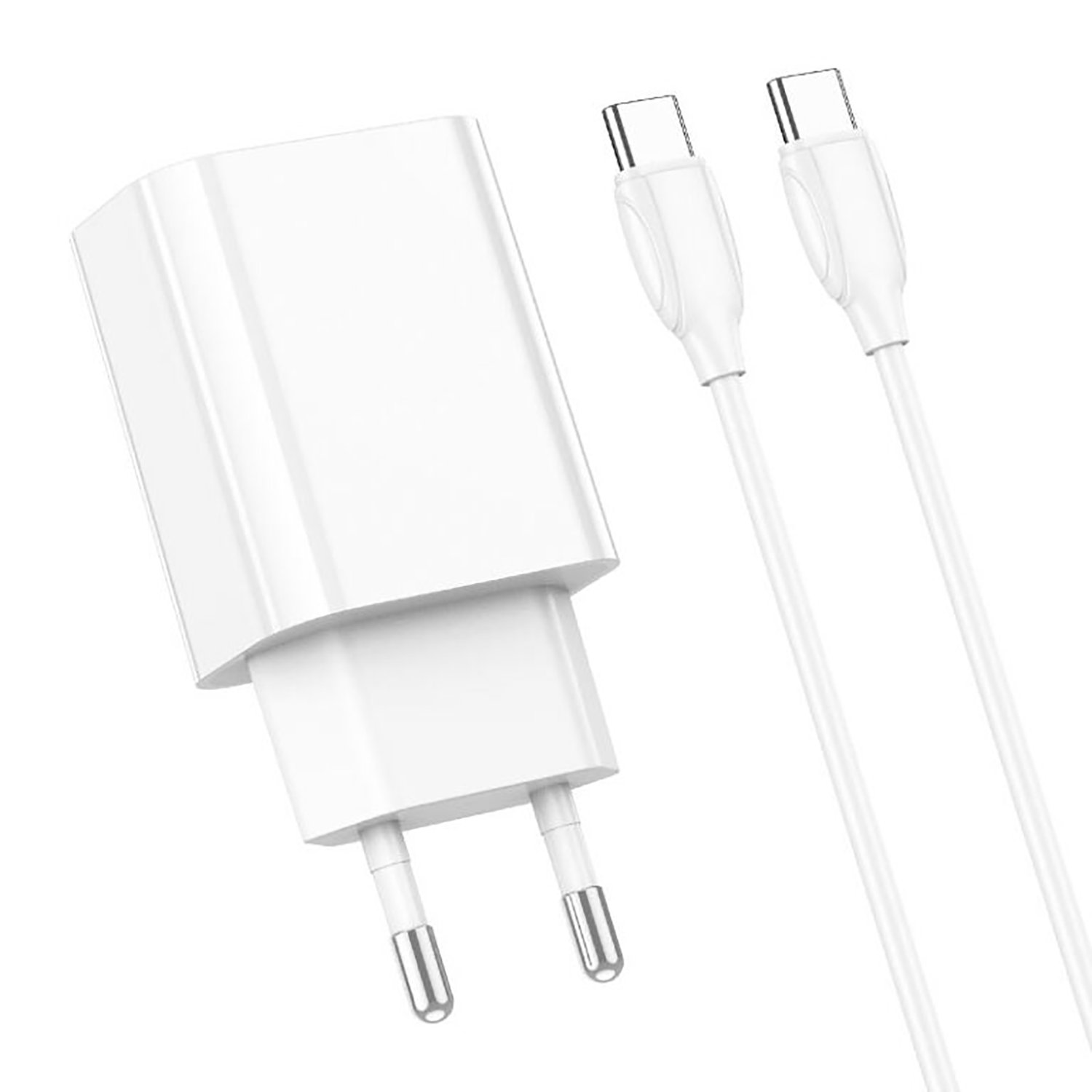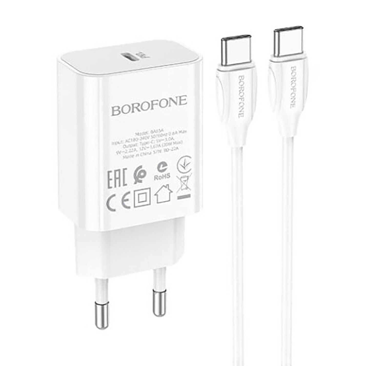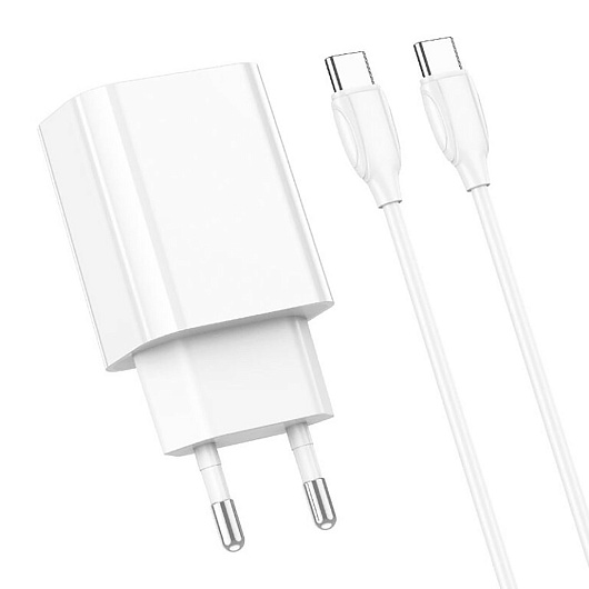Адаптер Сетевой с кабелем Borofone BA65A Single PD QC3.0 Type-C 20W (Type-C/Type-C) (white)