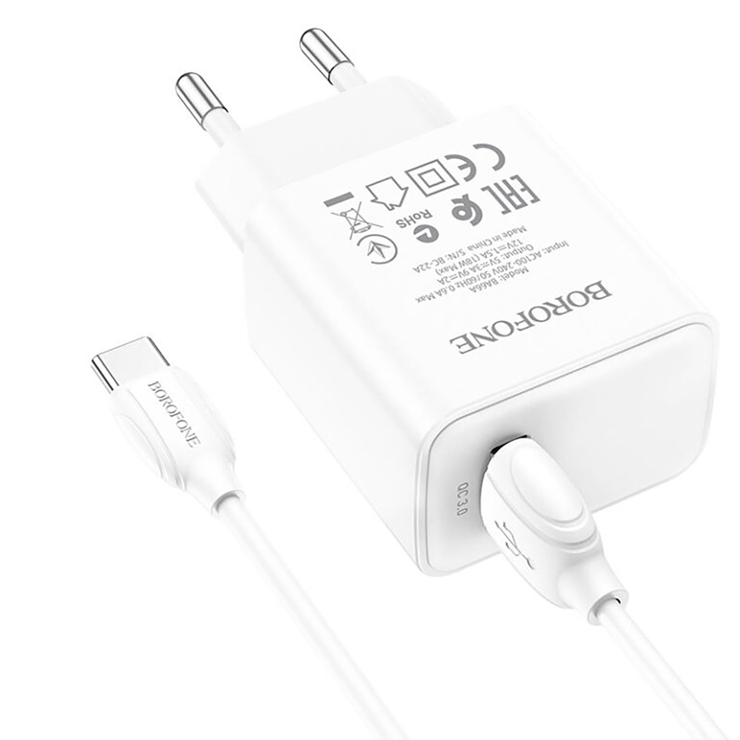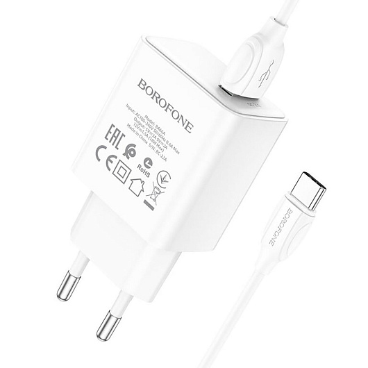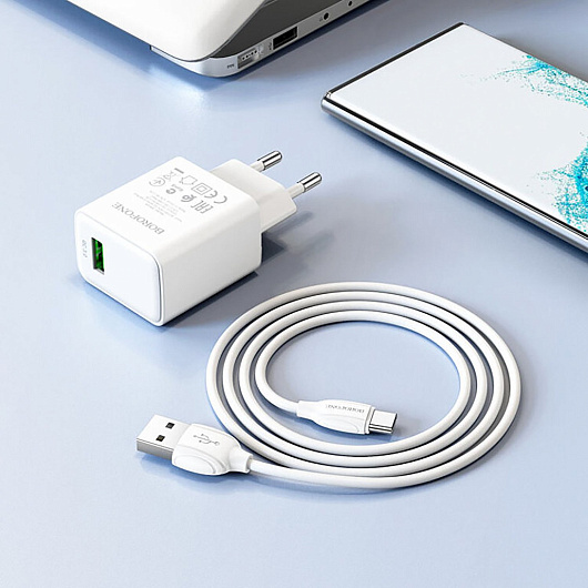 Адаптер Сетевой с кабелем Borofone BA66A QC USB 3A/18W (USB/Type-C) (white)
