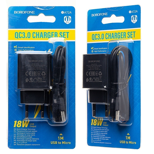 Адаптер Сетевой с кабелем Borofone BA72A QC3.0 USB 18W (USB/Micro USB) (black)