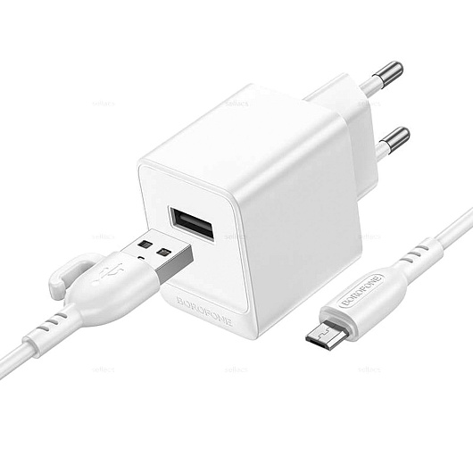 Адаптер Сетевой с кабелем Borofone BAS11A Erudite* USB 2,1A/10W (USB/Micro USB) (black)