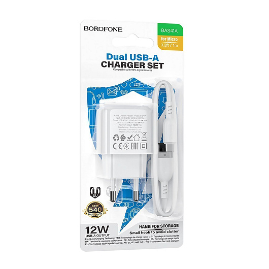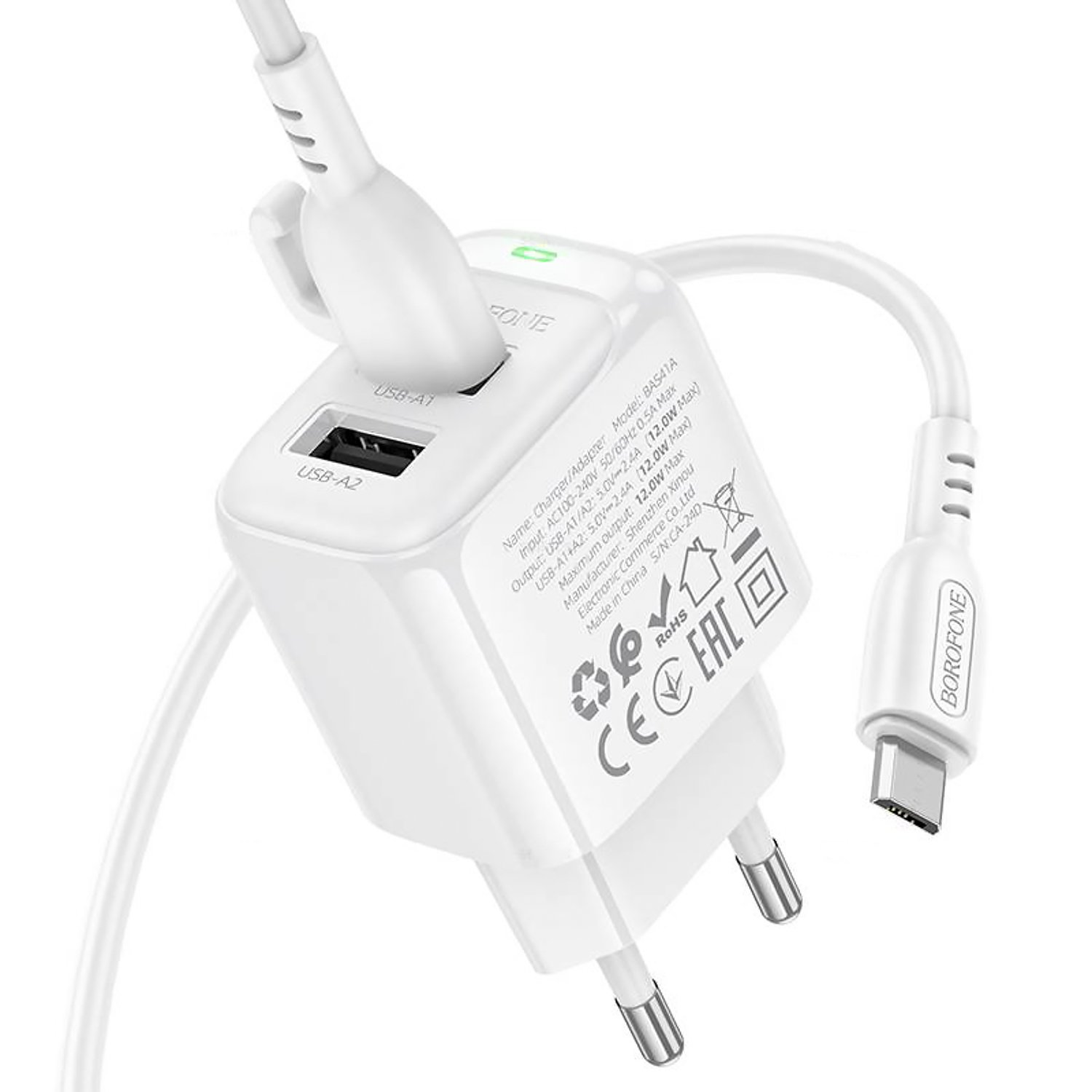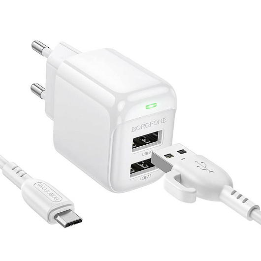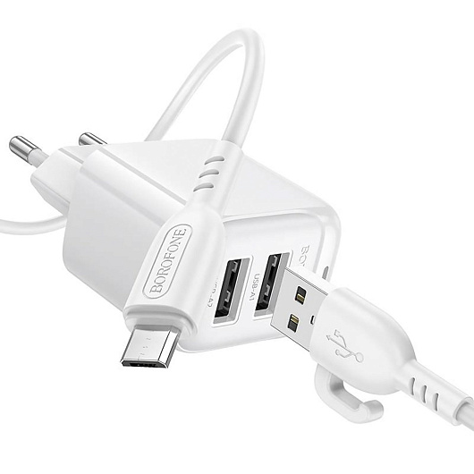 Адаптер Сетевой с кабелем Borofone BAS41A Potential 2USB 2A/10W (USB/Micro USB) (white)