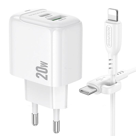 Адаптер Сетевой с кабелем Borofone BAS44A Potential USB/Type-C 3A/20W (Type-C/Lightning) (white)