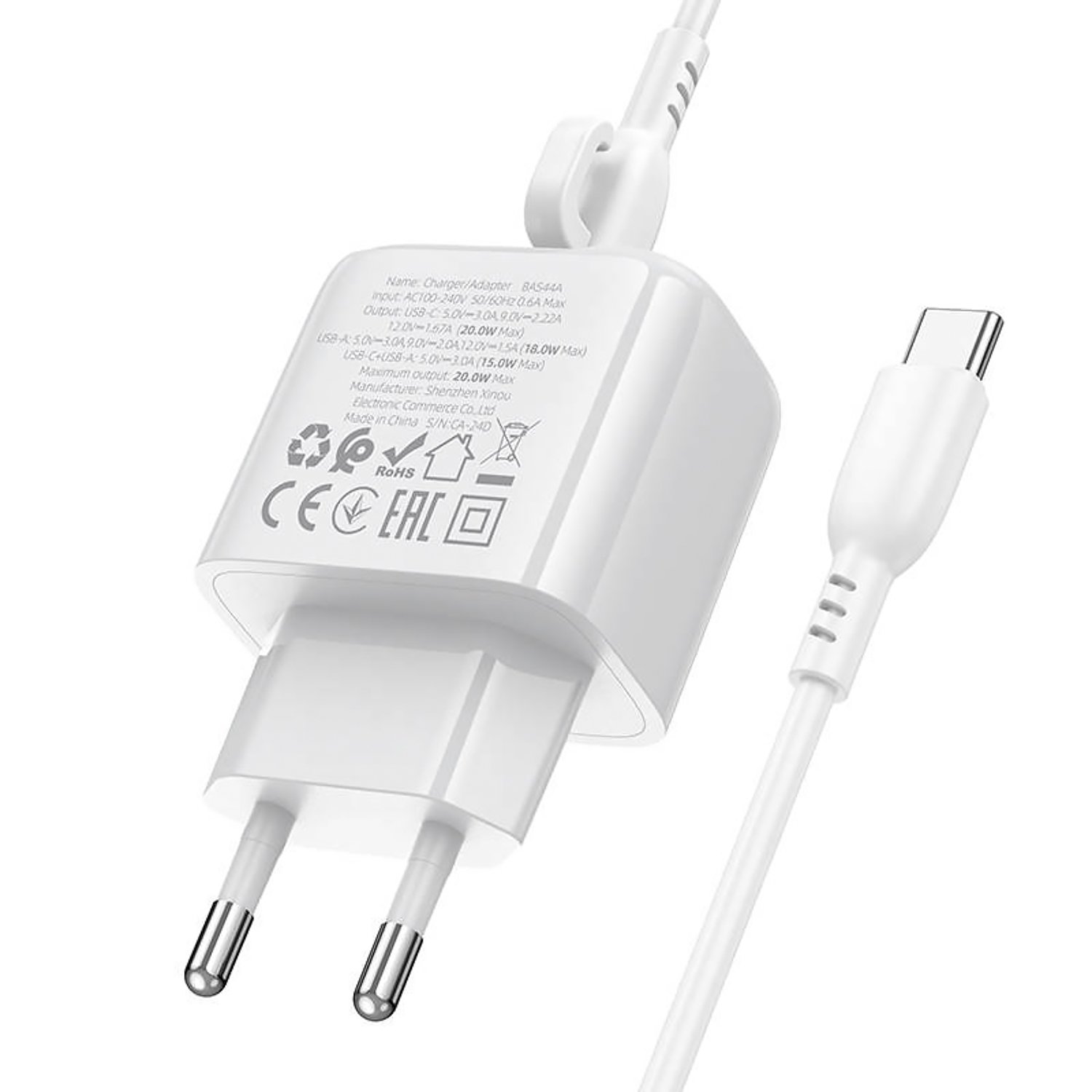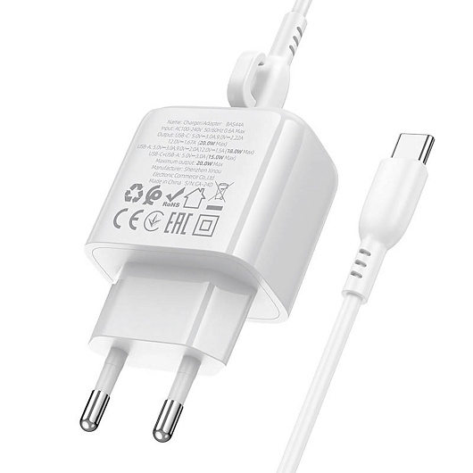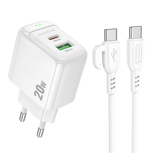 Адаптер Сетевой с кабелем Borofone BAS44A Potential USB/Type-C 3A/20W (Type-C/Type-C) (white)