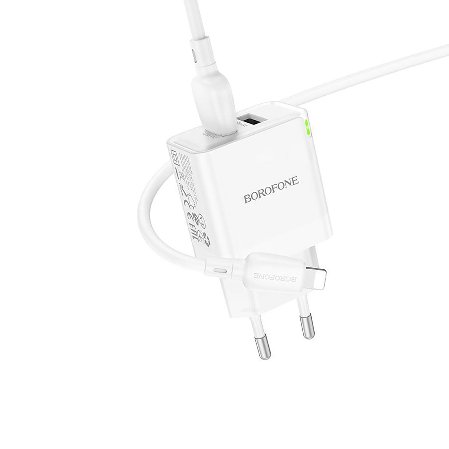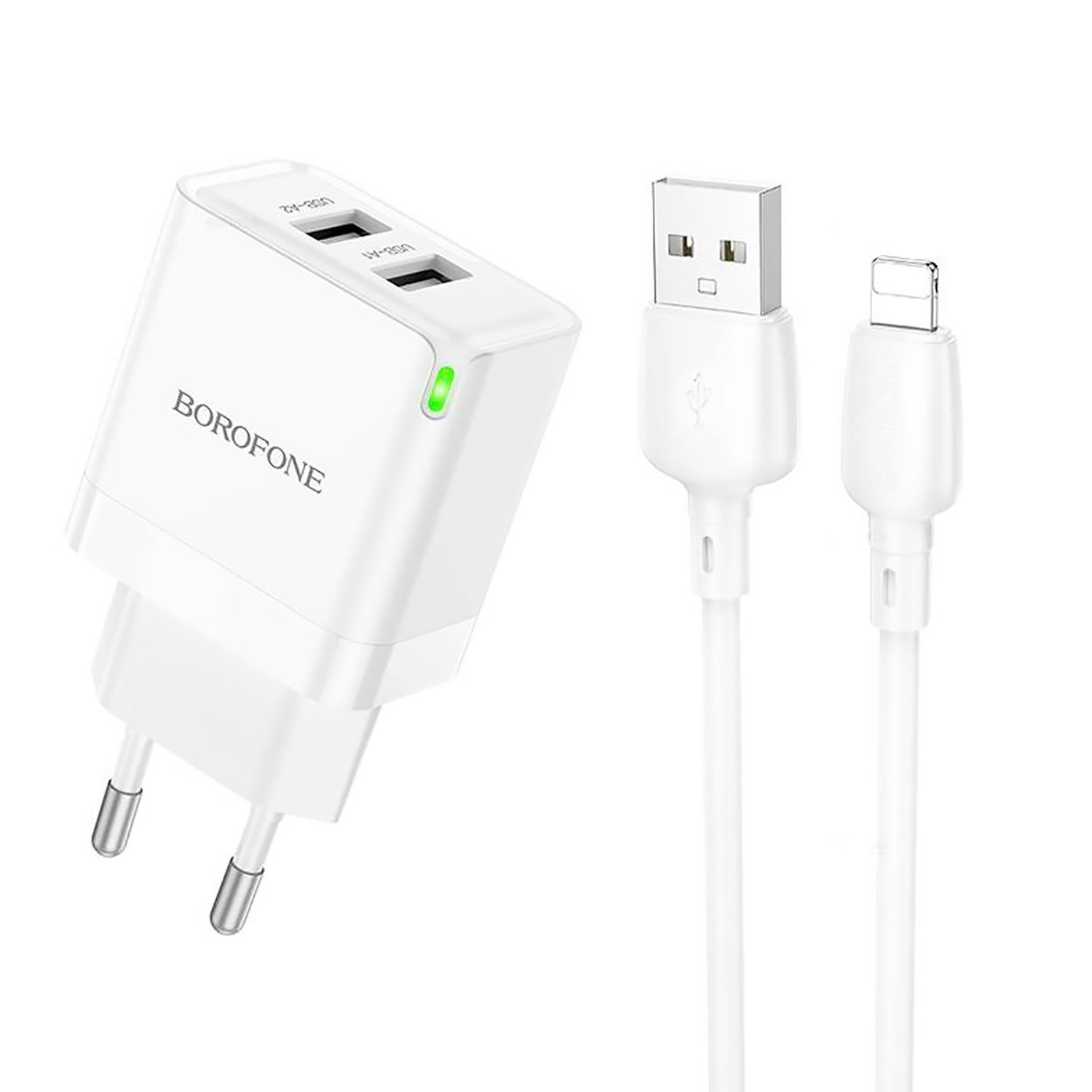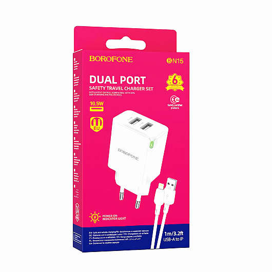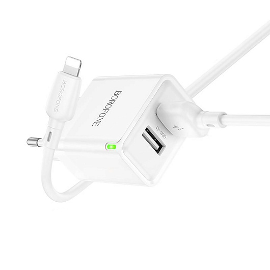 Адаптер Сетевой с кабелем Borofone BN15 Strong 2USB 2,1A/10,5W (USB/Lightning) (white)