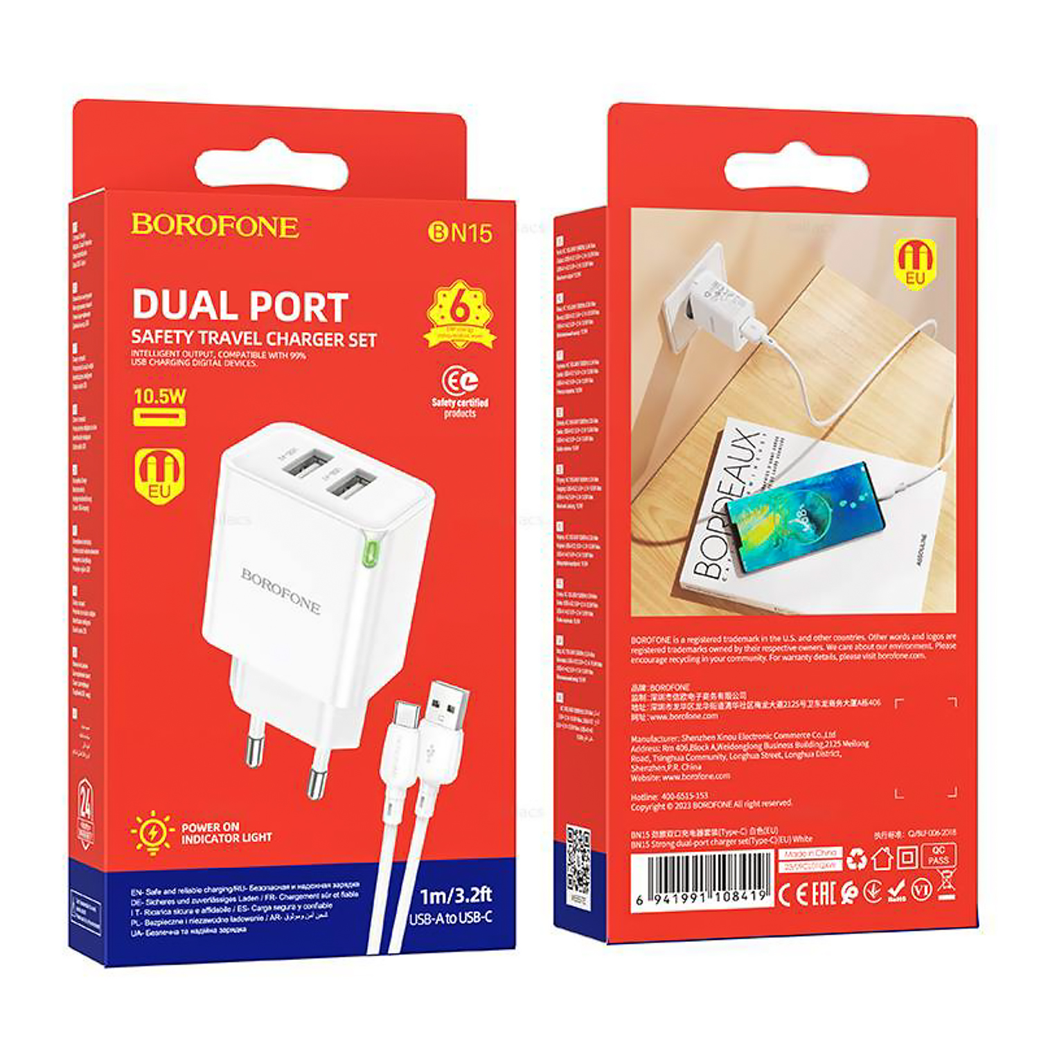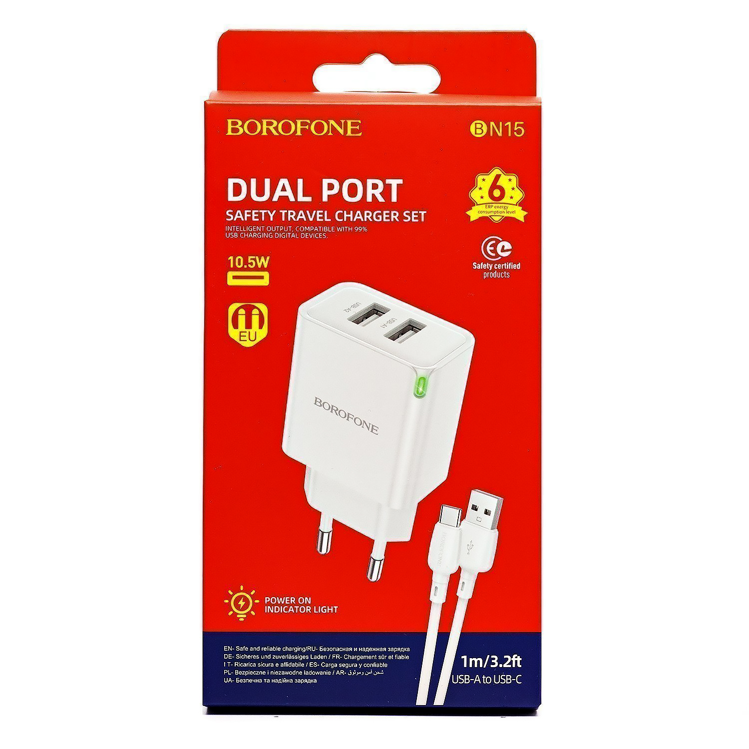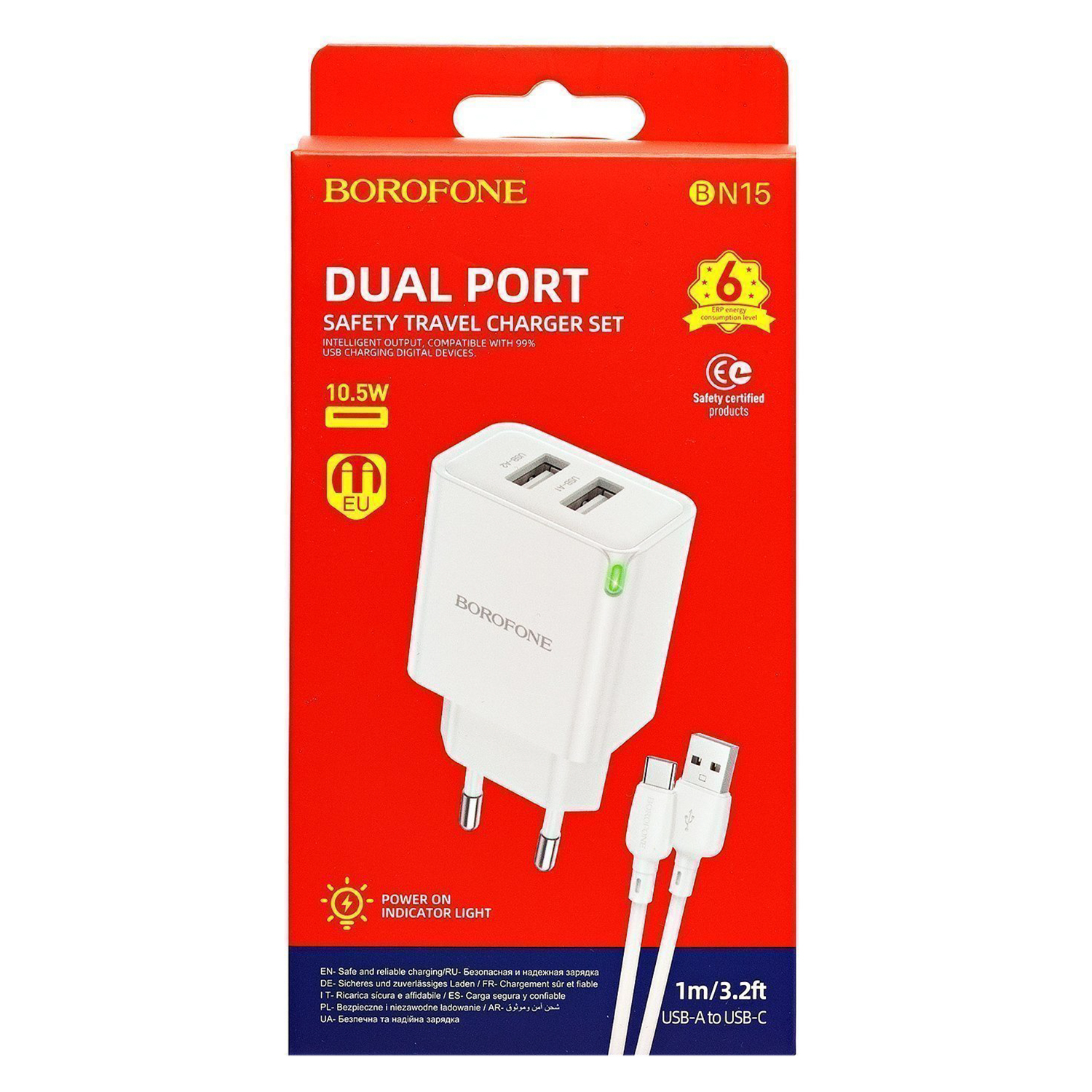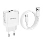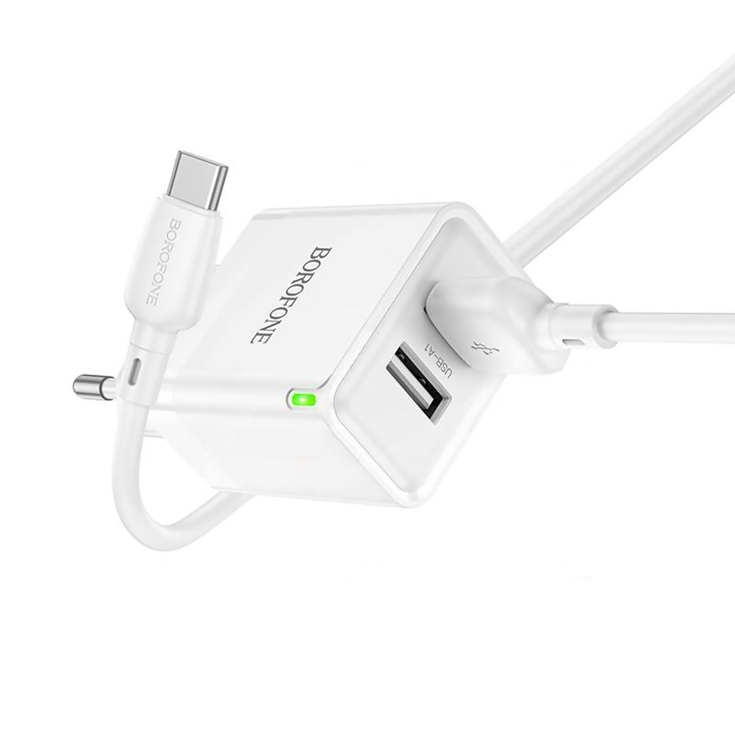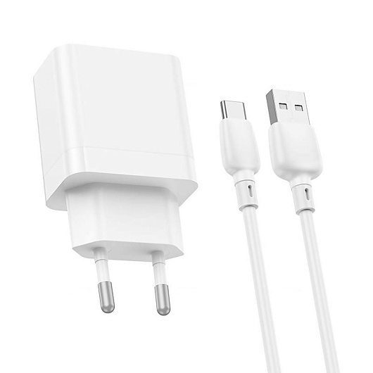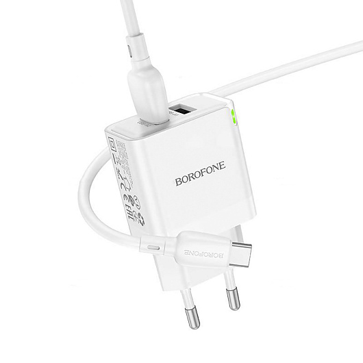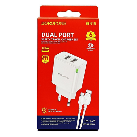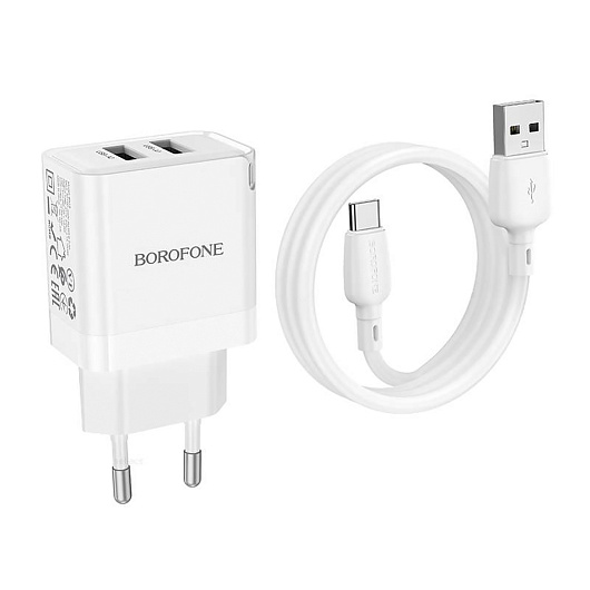 Адаптер Сетевой с кабелем Borofone BN15 Strong 2USB 2,1A/10,5W (USB/Type-C) (white)