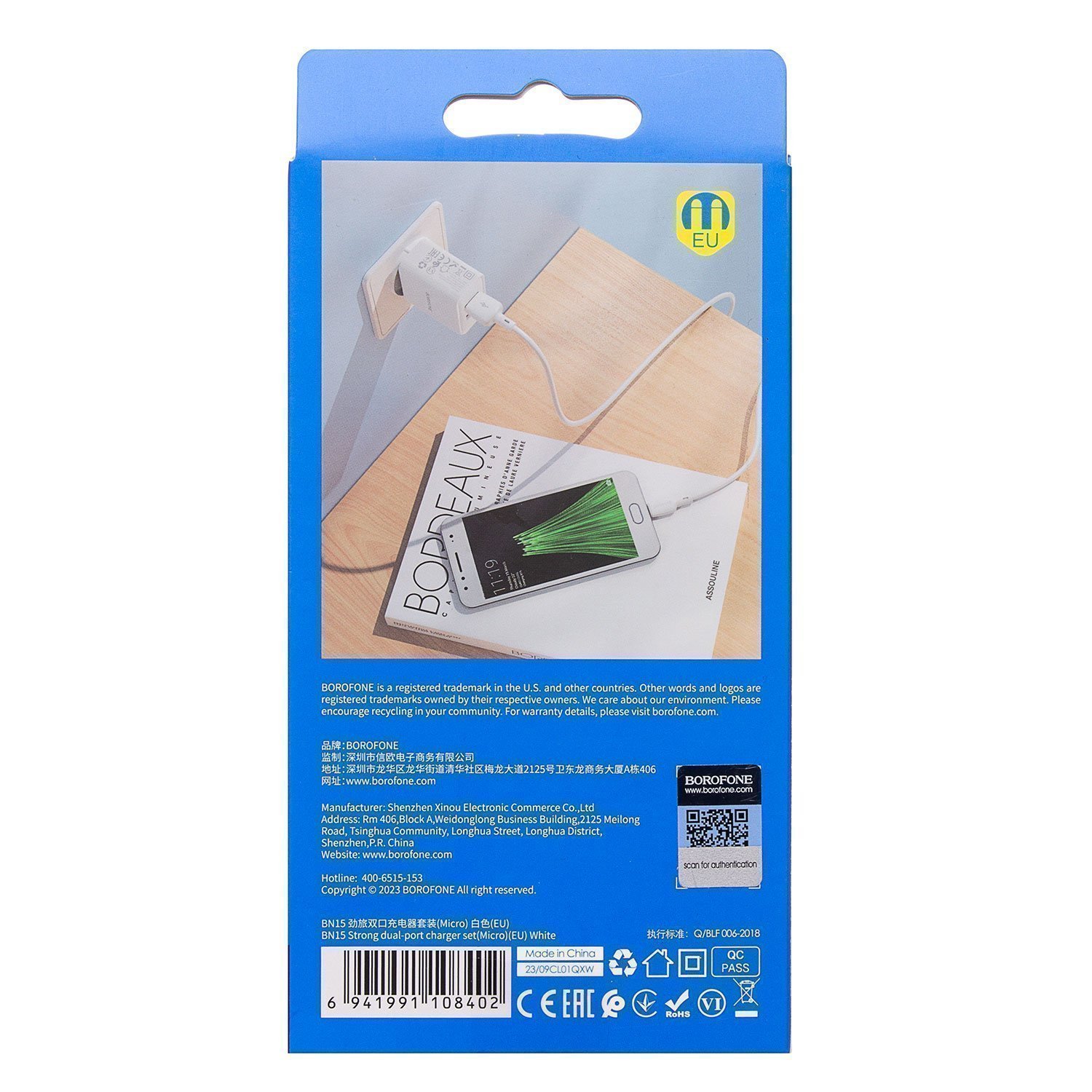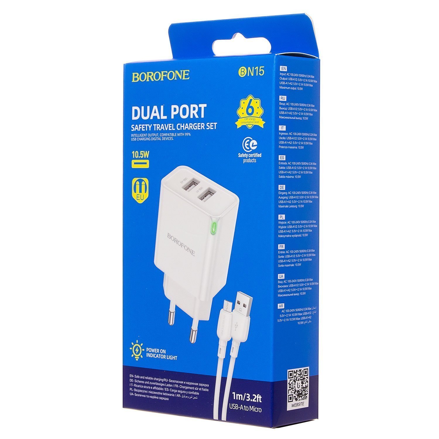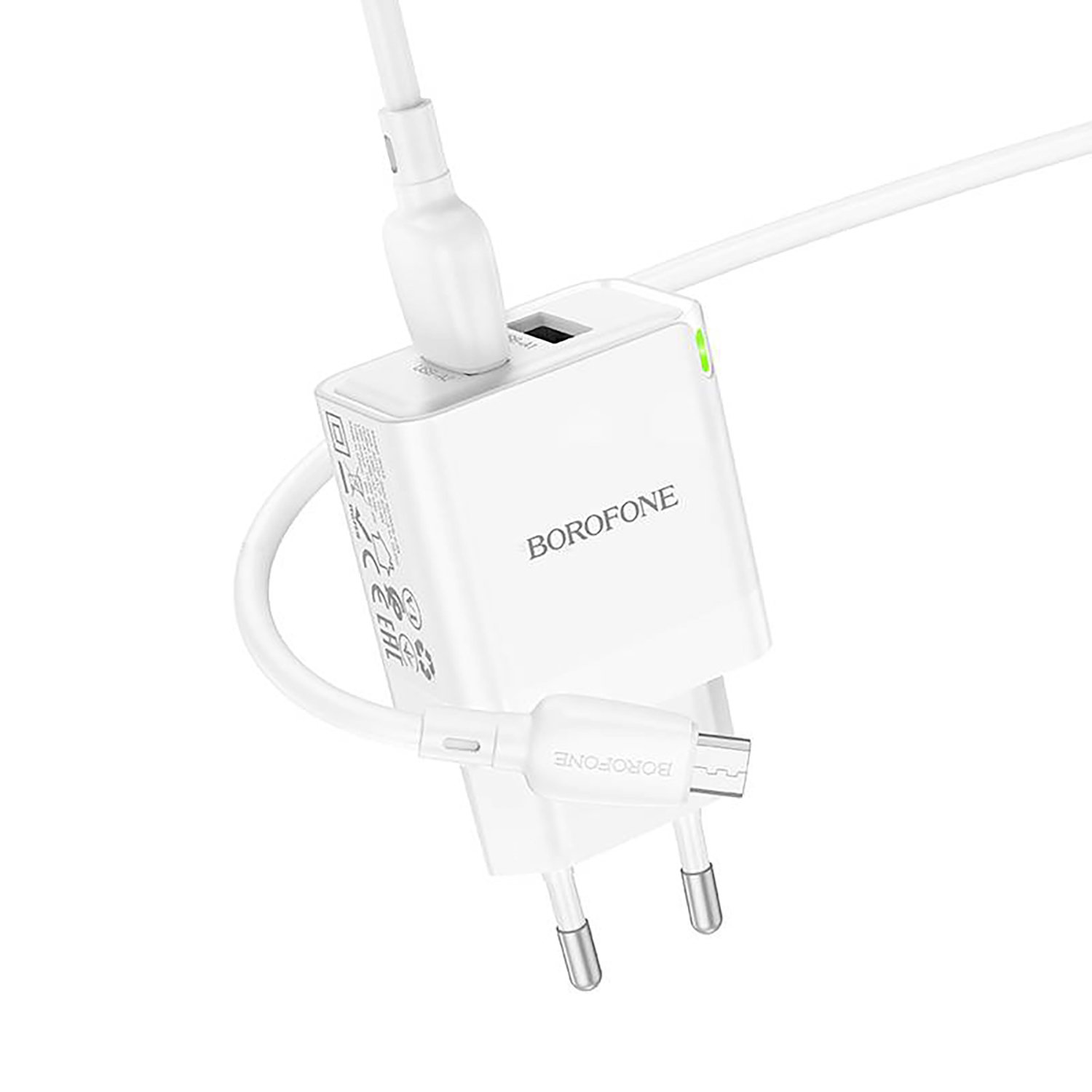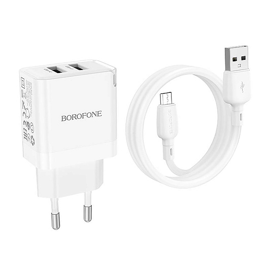 Адаптер Сетевой с кабелем Borofone BN15 Strong USB 2,1A/10,5W (USB/Micro USB) (white)