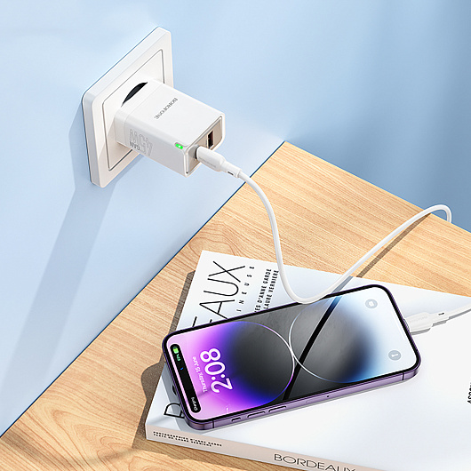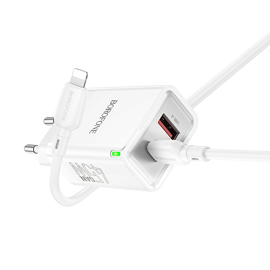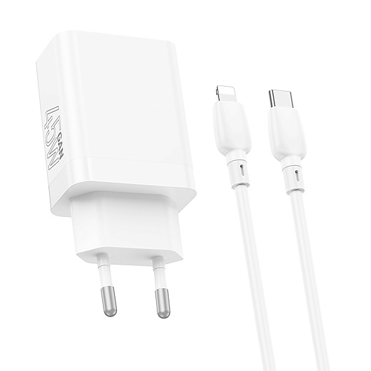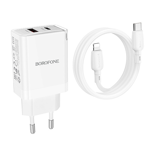 Адаптер Сетевой с кабелем Borofone BN16 Tough PD USB/Type-C 45W (Type-C/Lightning) (white)