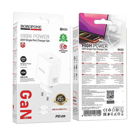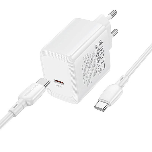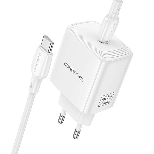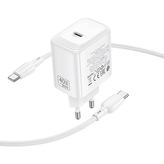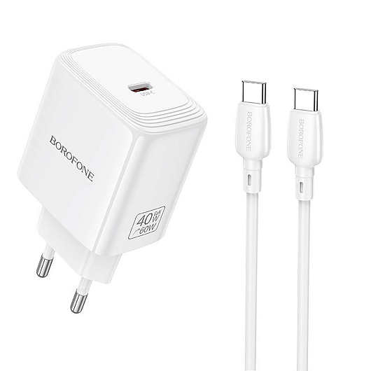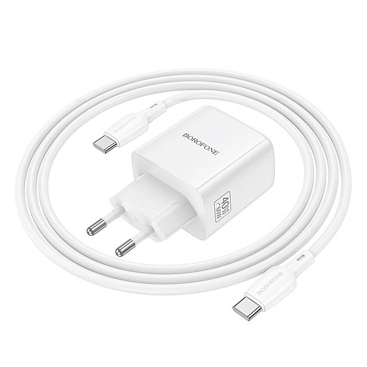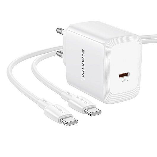 Адаптер Сетевой с кабелем Borofone BN33 Fuente Type-C 40W (Type-C/Type-C) (white)