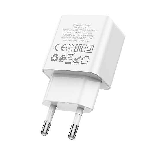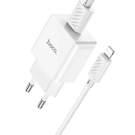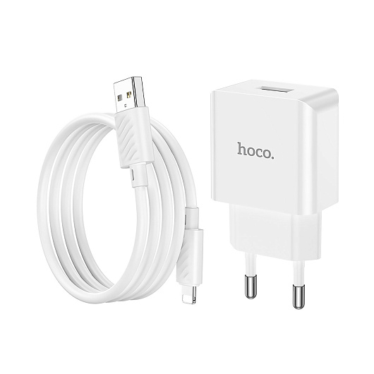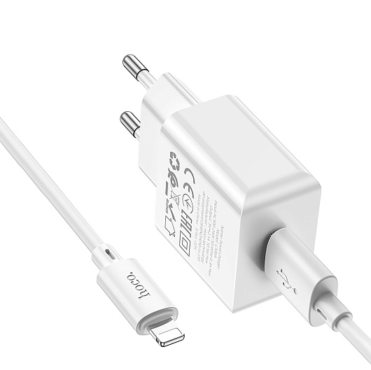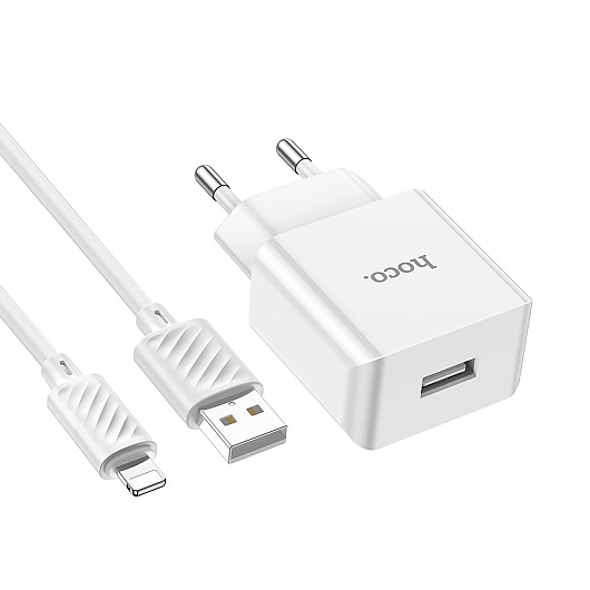 Адаптер Сетевой с кабелем Hoco C106A Leisure USB 2,1A/10W (USB/Lightning) (white)