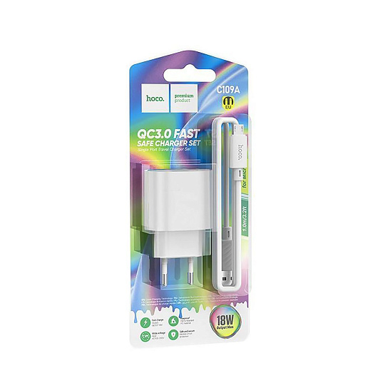 Адаптер Сетевой с кабелем Hoco C109A QC3.0 USB 3A/18W (USB/Micro USB) (white)