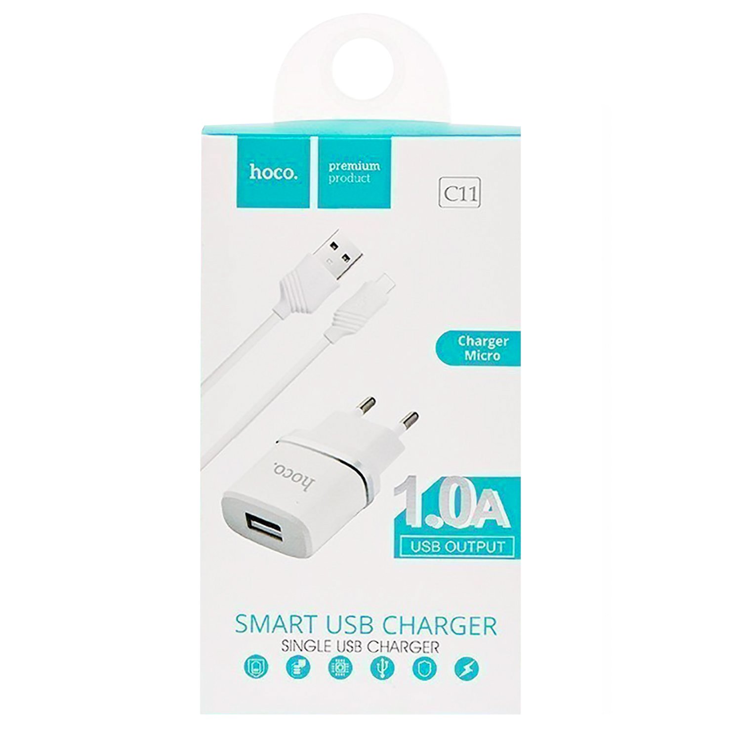 Адаптер Сетевой с кабелем Hoco C11 USB 1A/5W (USB/Micro USB) (white)