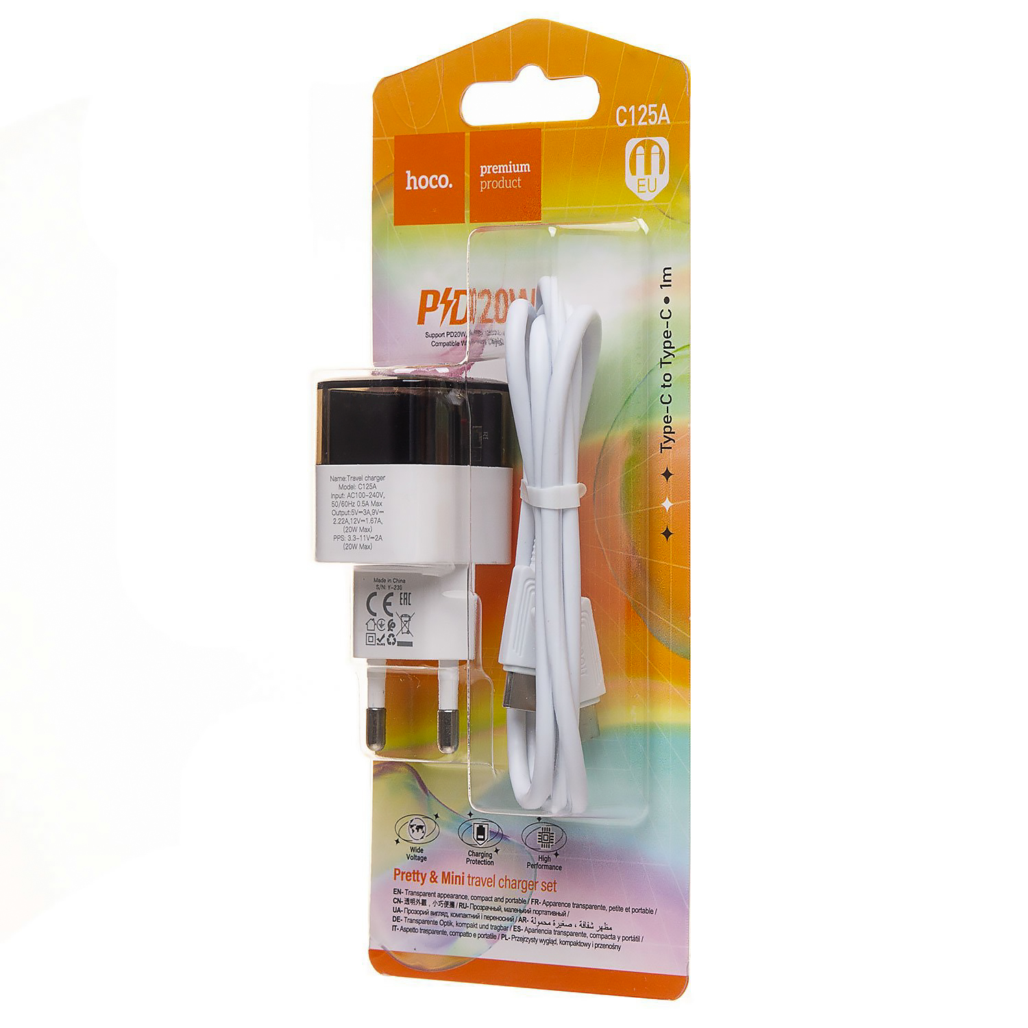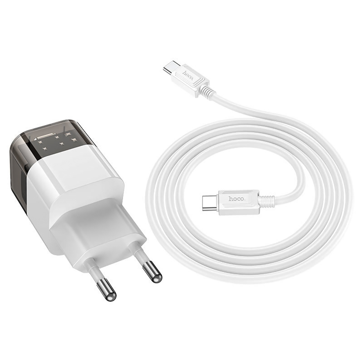 Адаптер Сетевой с кабелем Hoco C125A Transparent PD Type-C 3A/20W (Type-C/Type-C) (black/white)