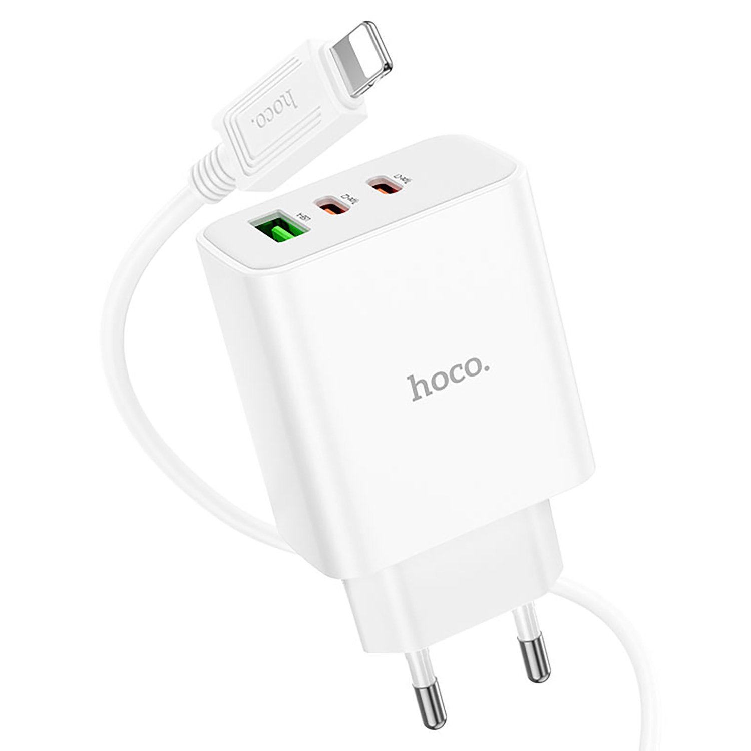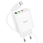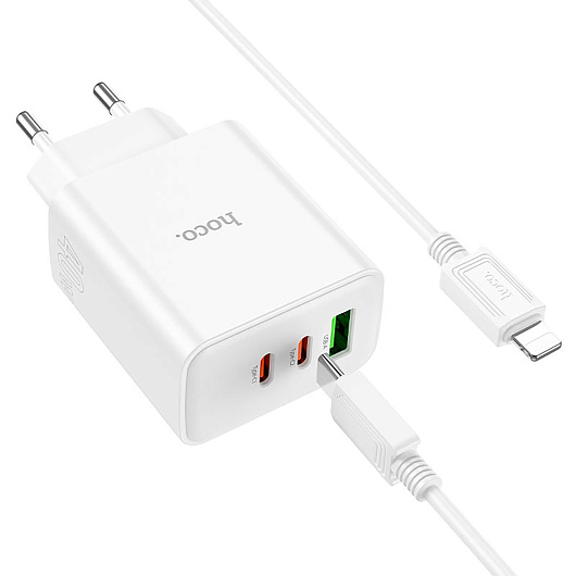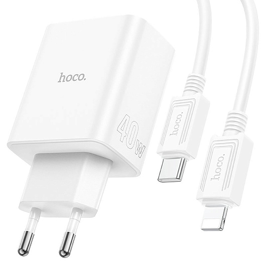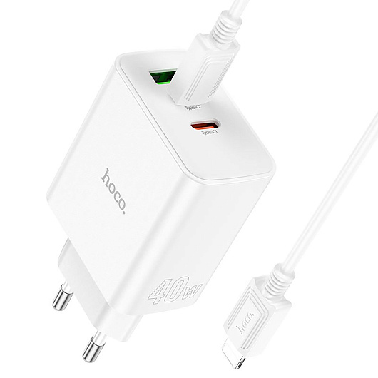 Адаптер Сетевой с кабелем Hoco C126A PD 2Type-C/USB 40W (Type-C/Lightning) (white)