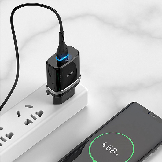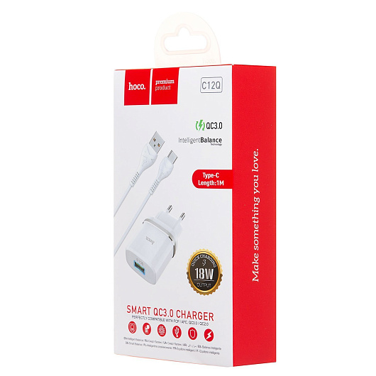 Адаптер Сетевой с кабелем Hoco C12Q QC3.0 USB 3A/18W (USB/Type-C) (black)