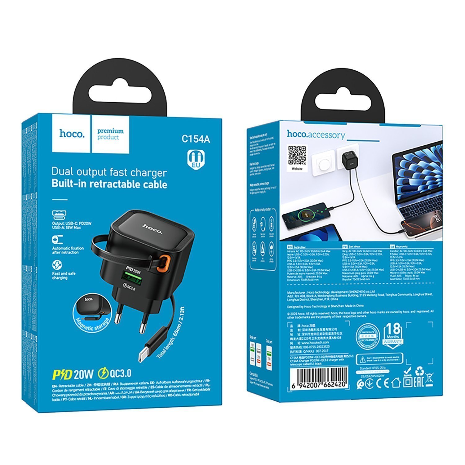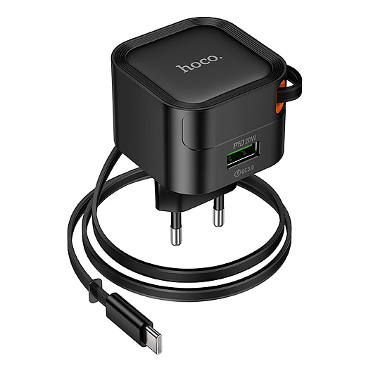 Адаптер Сетевой с кабелем Hoco C154A USB 20W (несъемный/Type-C) (black)