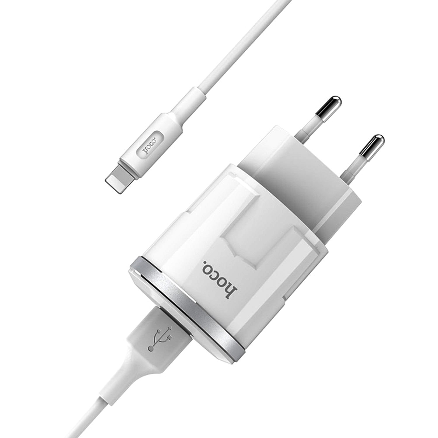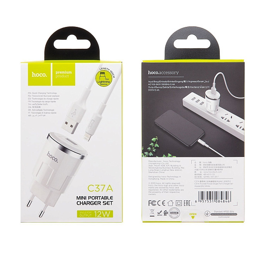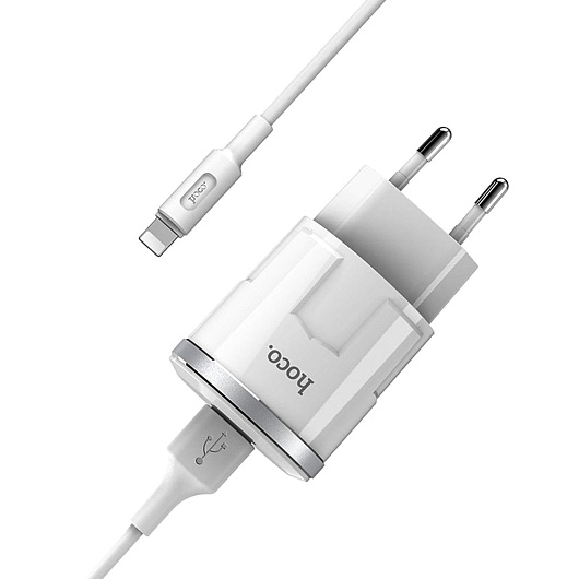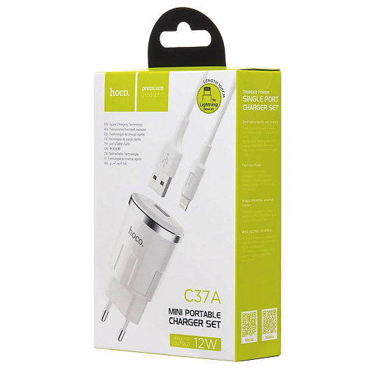 Адаптер Сетевой с кабелем Hoco C37A USB 2,4A/12W (USB/Lightning) (white)