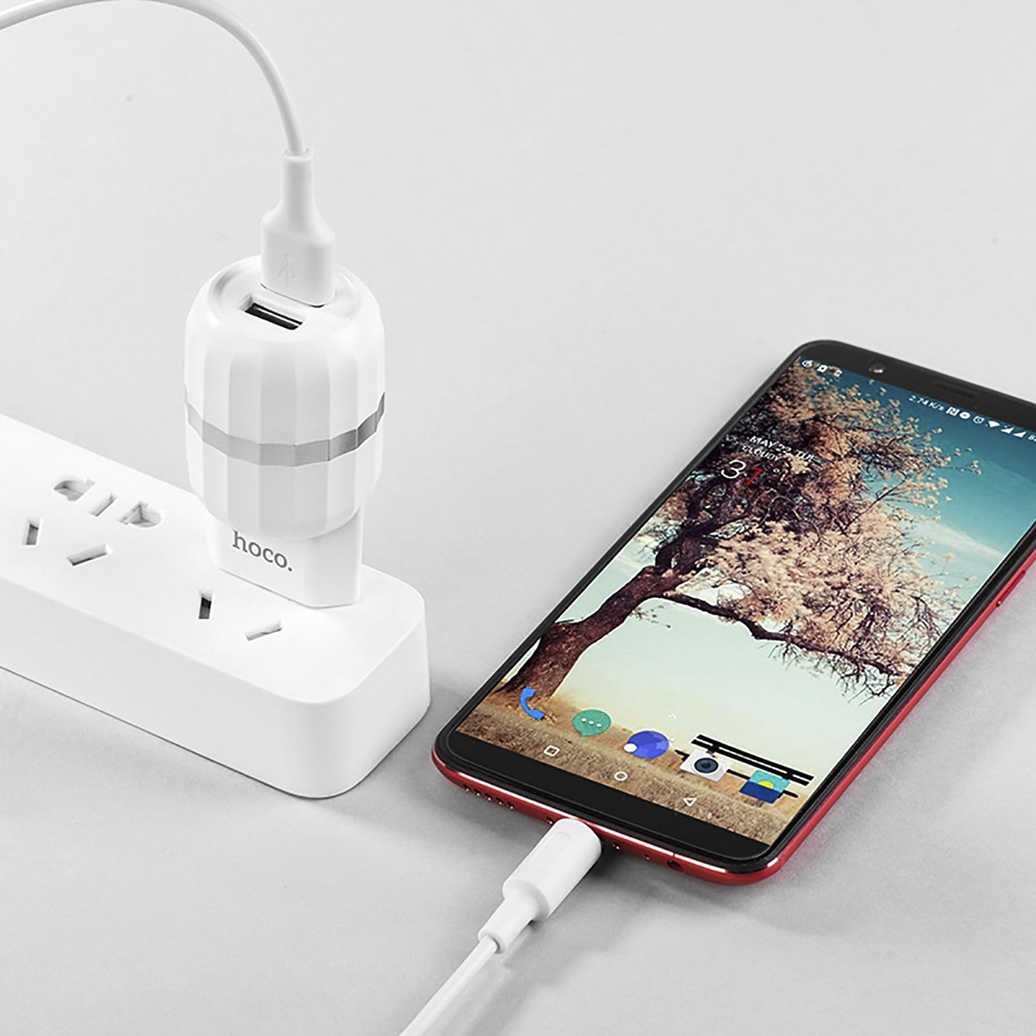 Адаптер Сетевой с кабелем Hoco C41A 2USB 2,4A/12W (USB/Micro USB) (white)