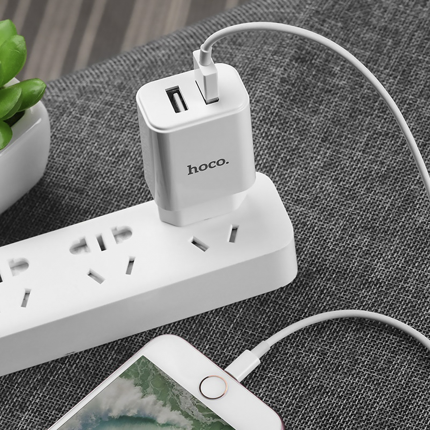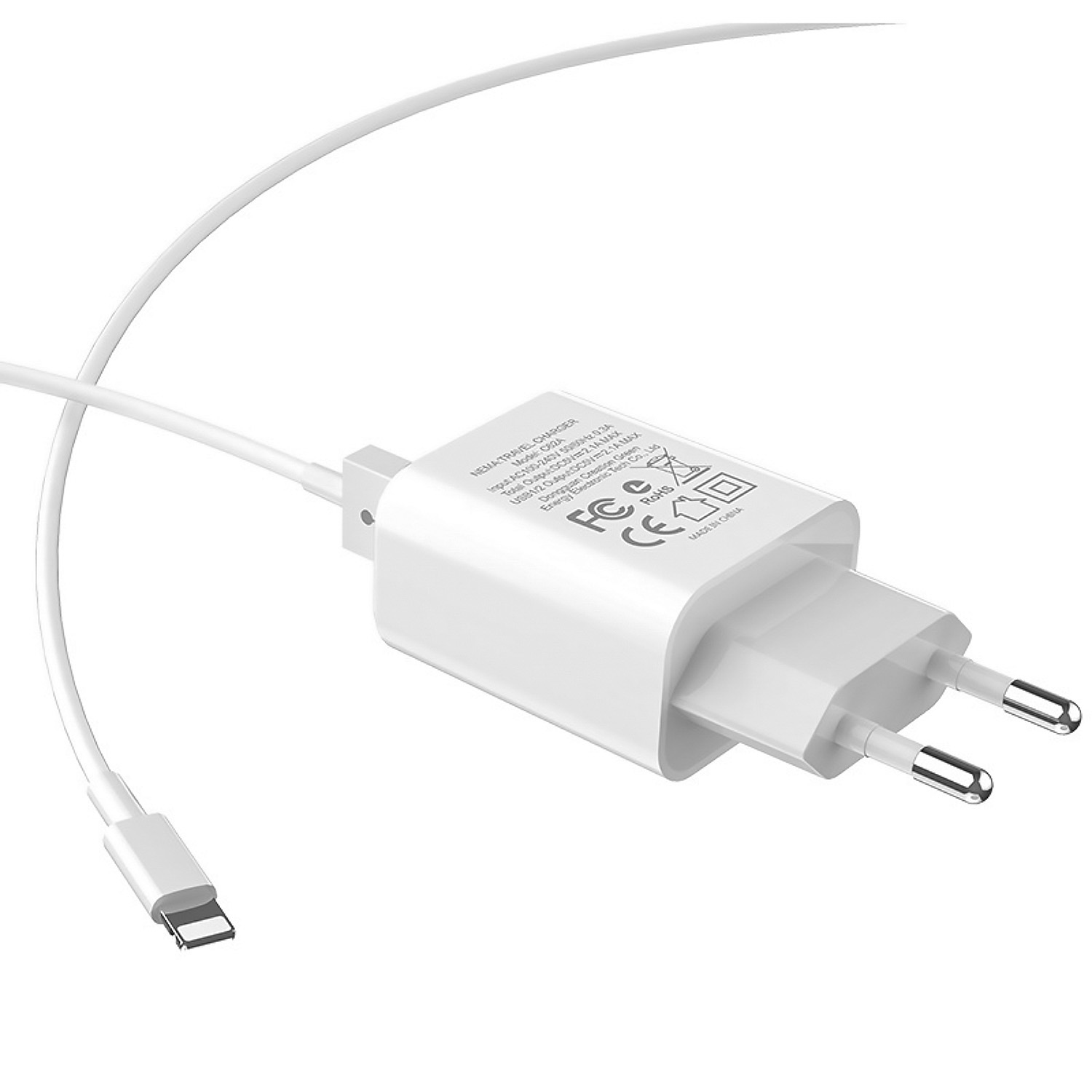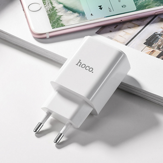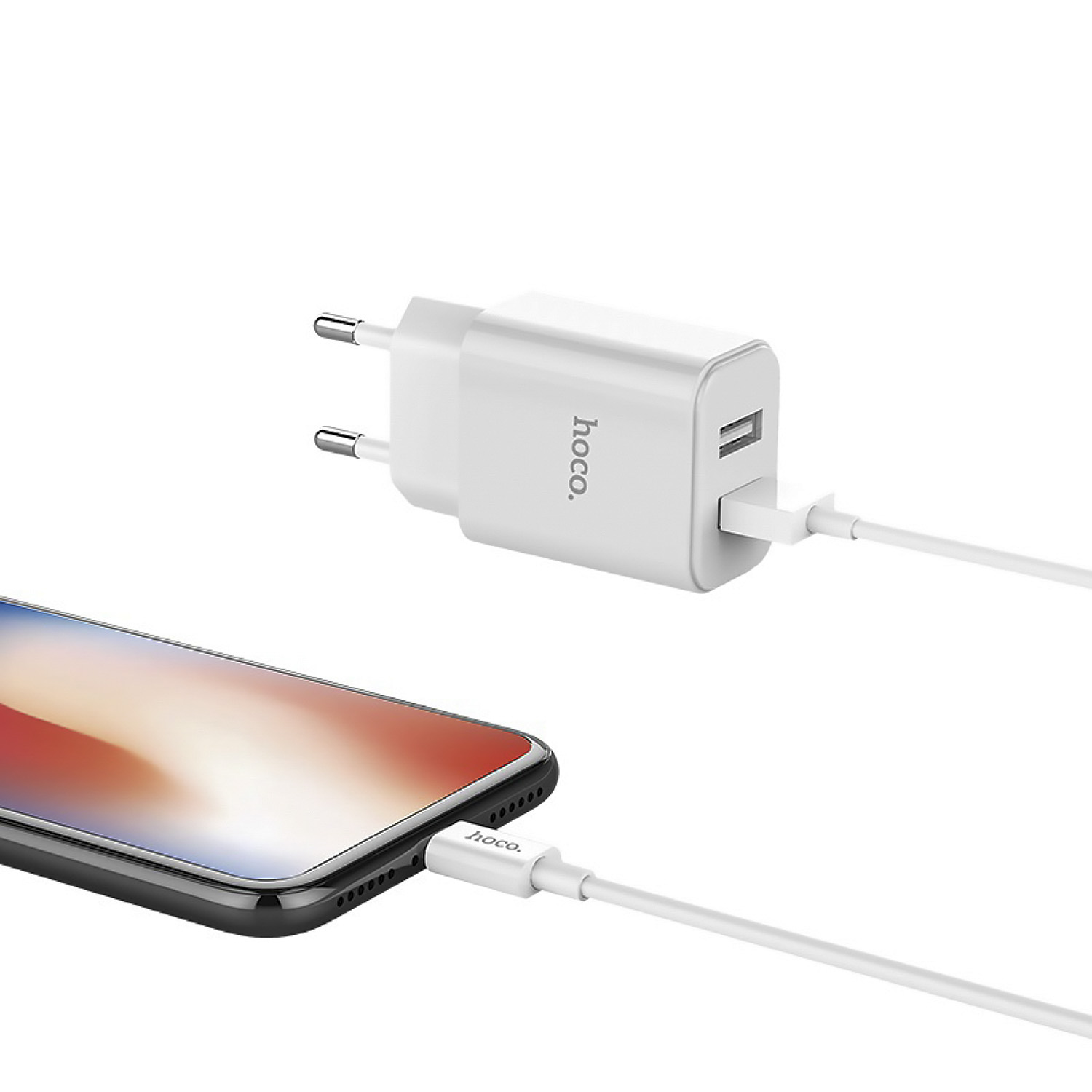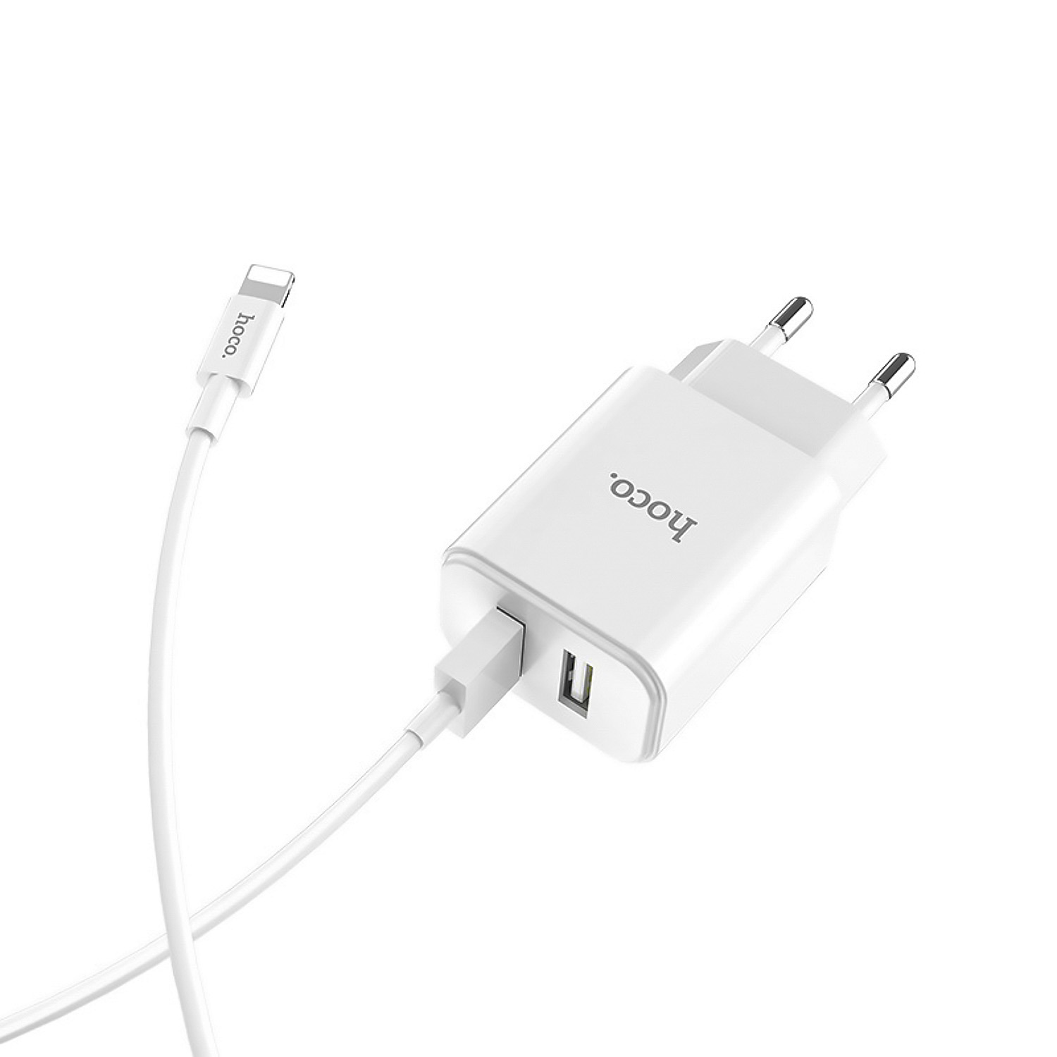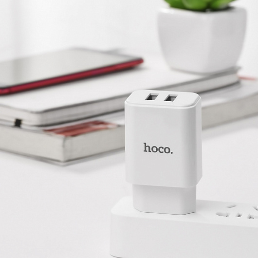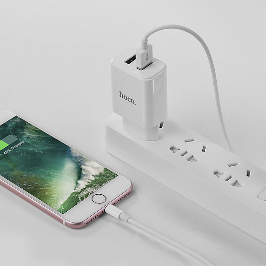 Адаптер Сетевой с кабелем Hoco C62A Victoria 2USB 2,1A/10W (USB/Lightning) (white)