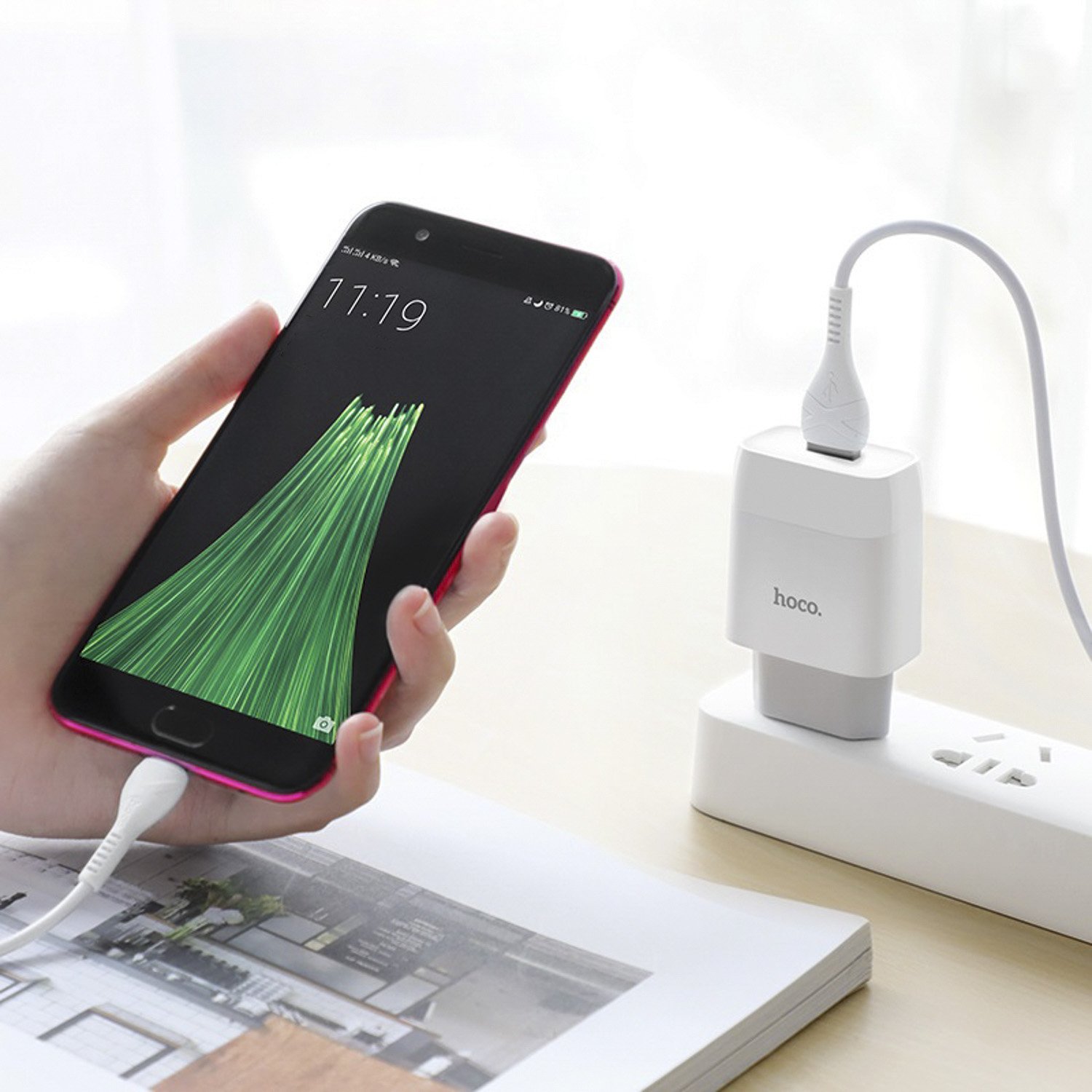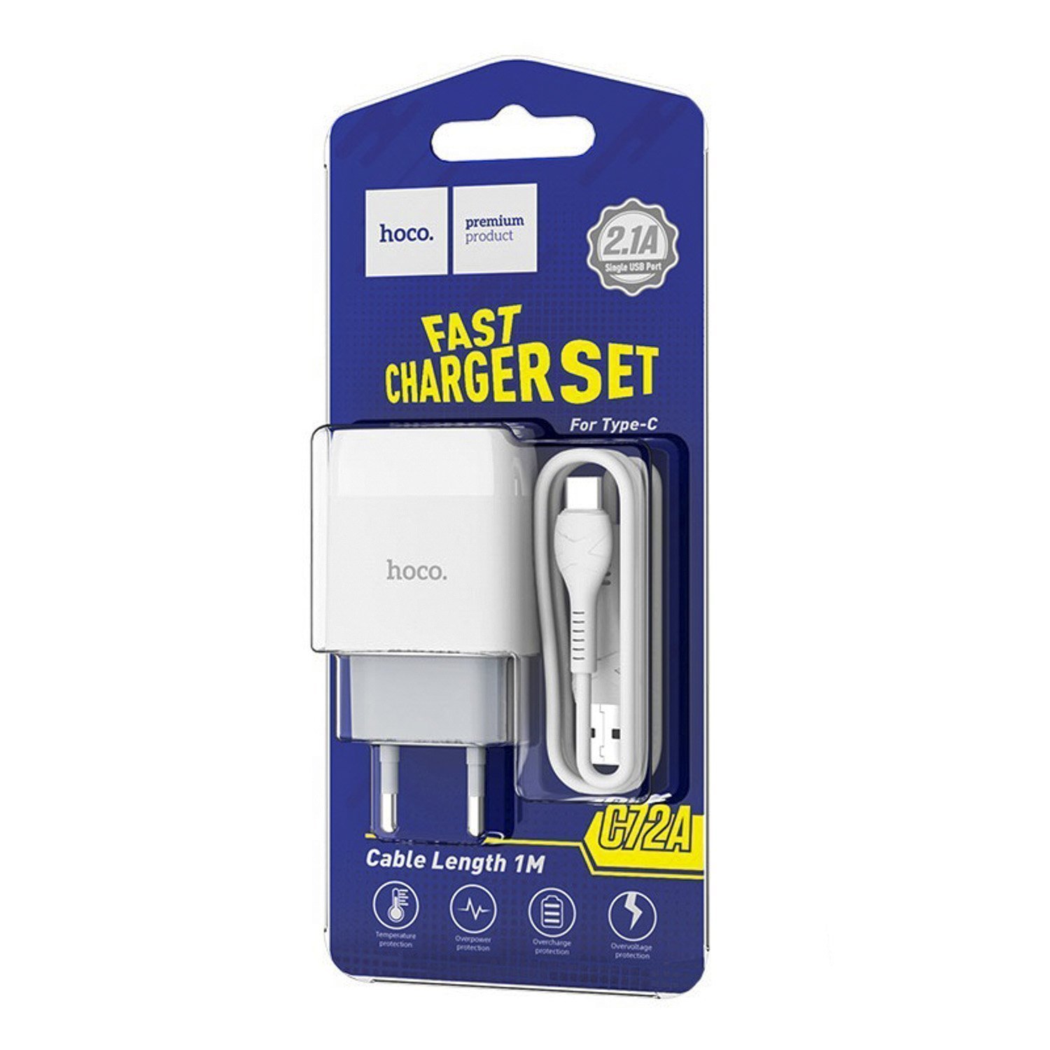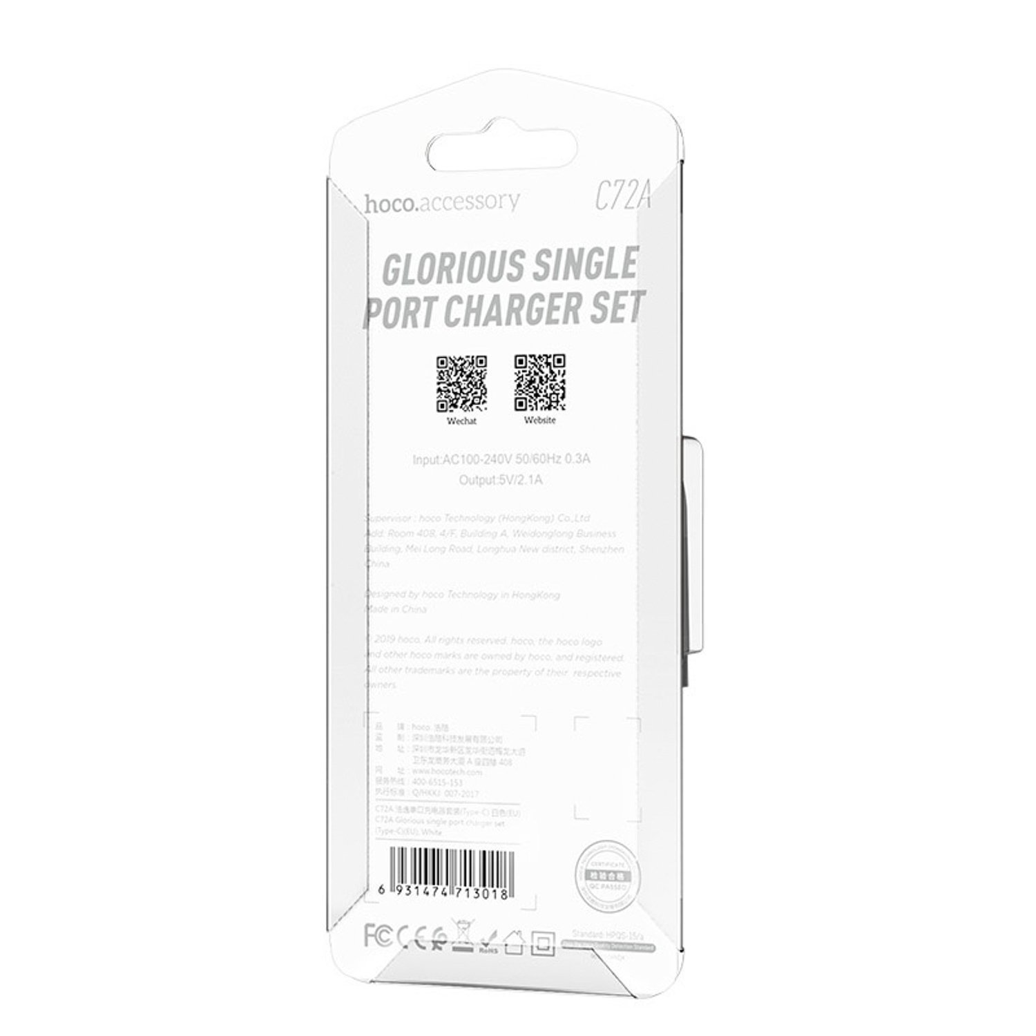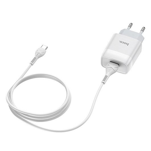 Адаптер Сетевой с кабелем Hoco C72A Glorious* USB 2,1A/10W (USB/Type-C) (white)