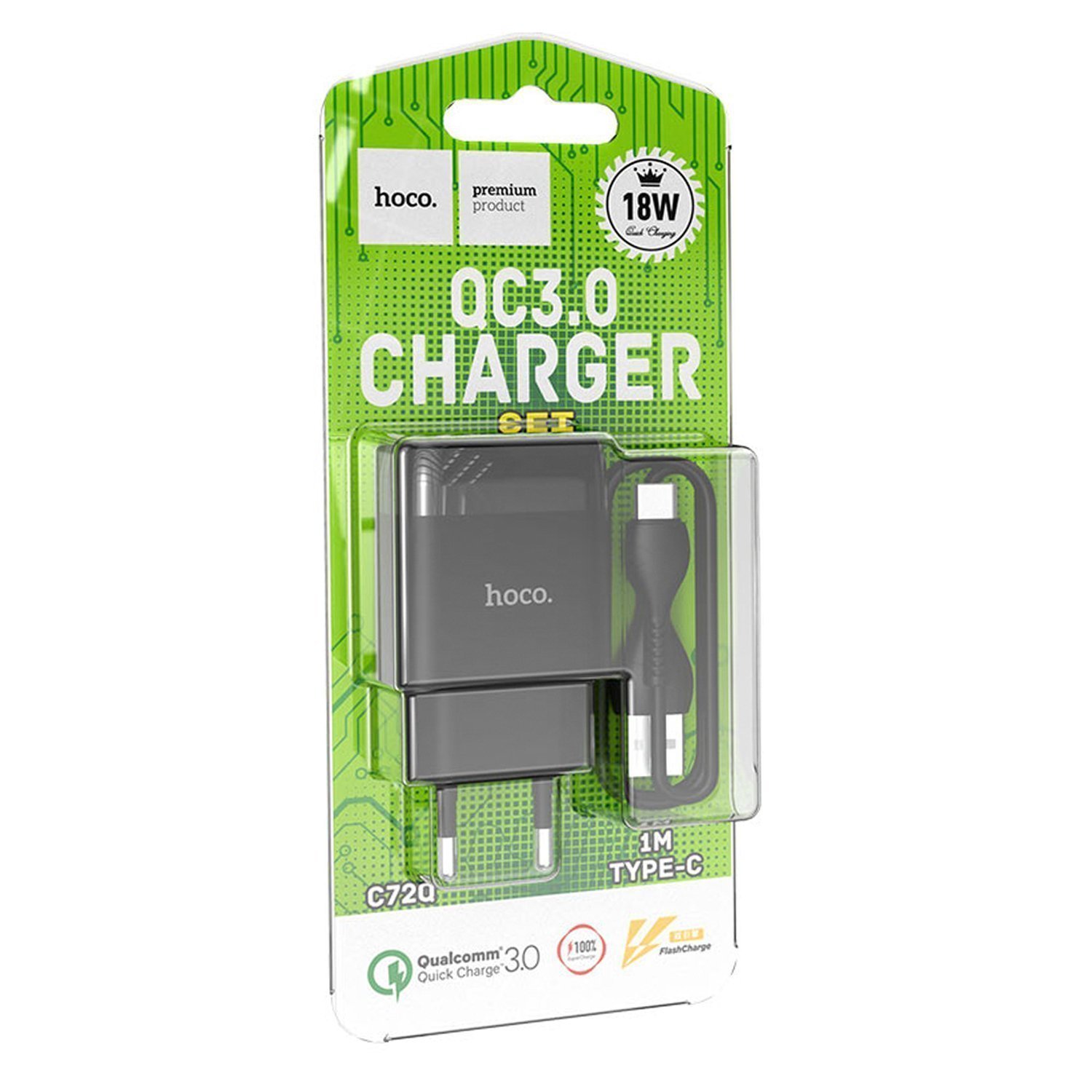 Адаптер Сетевой с кабелем Hoco C72Q Glorious QC3.0 USB 3A/18W (USB/Type-C) (black)