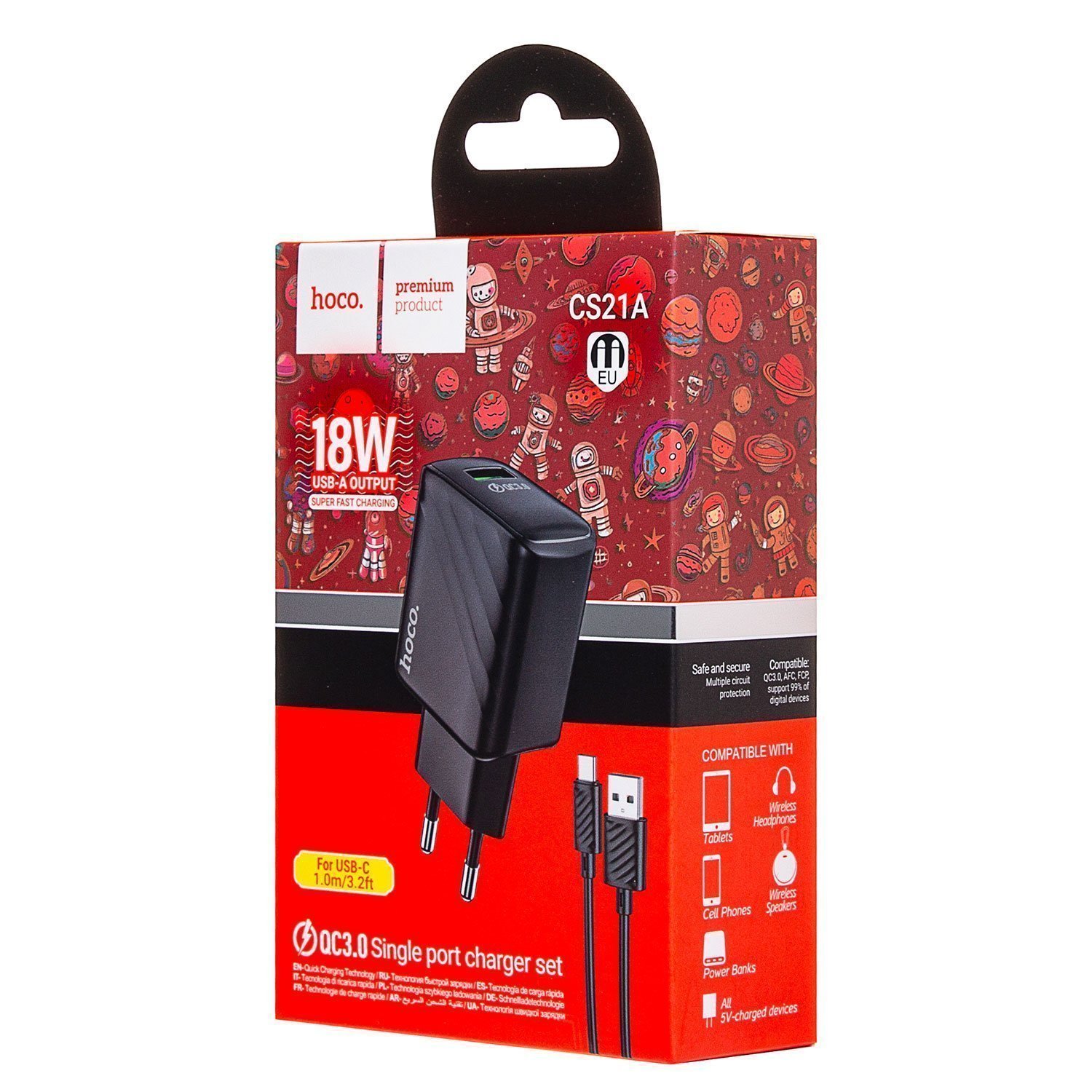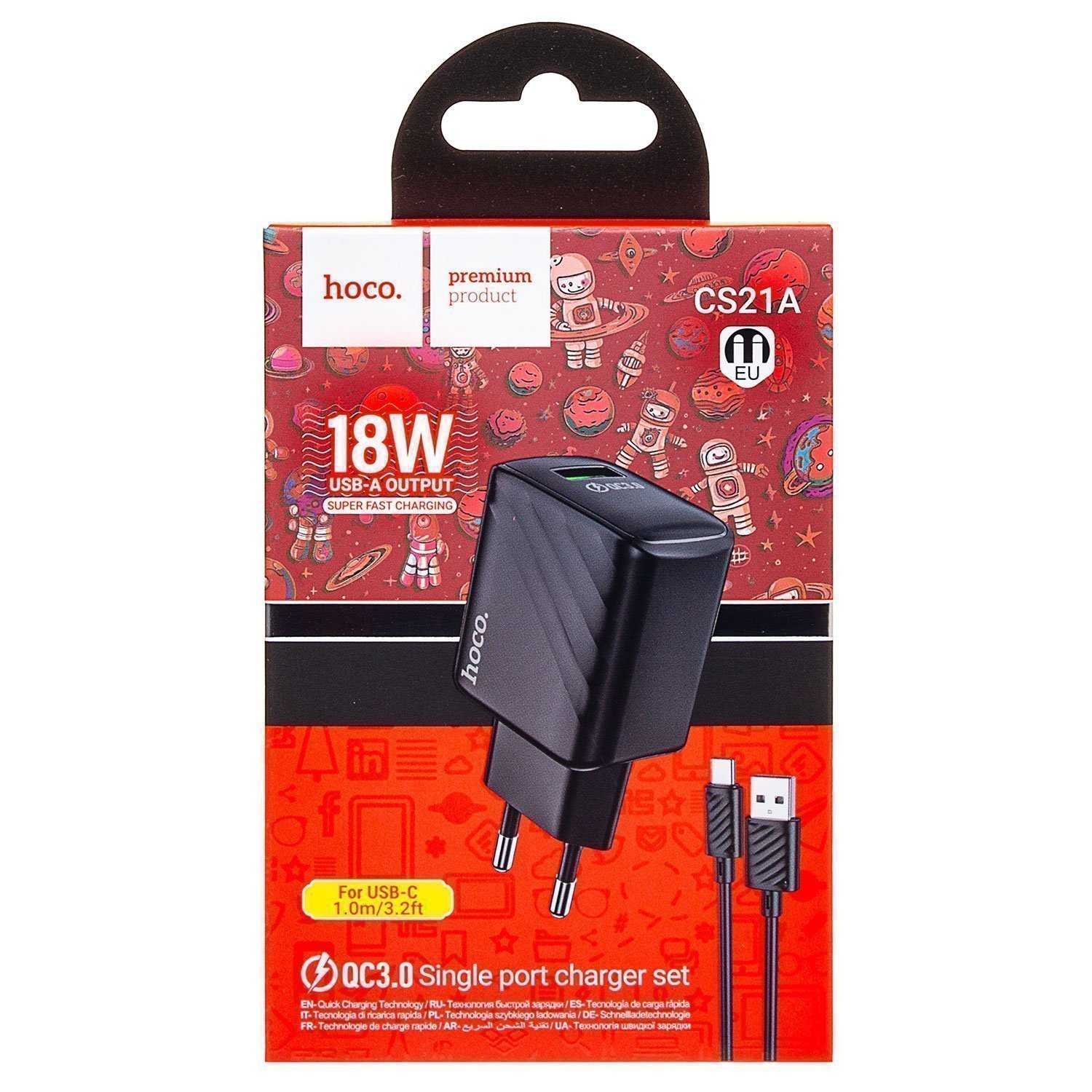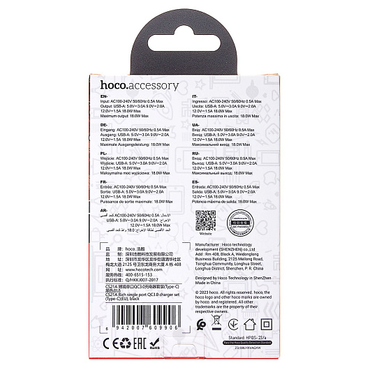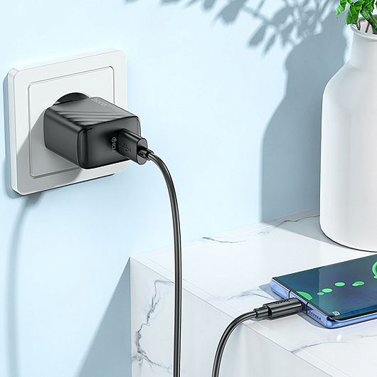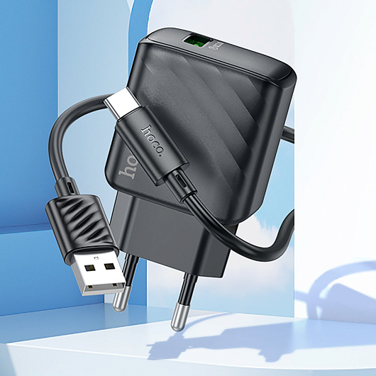 Адаптер Сетевой с кабелем Hoco CS21A Rich QC3.0* USB 18W (USB/Type-C) (black)