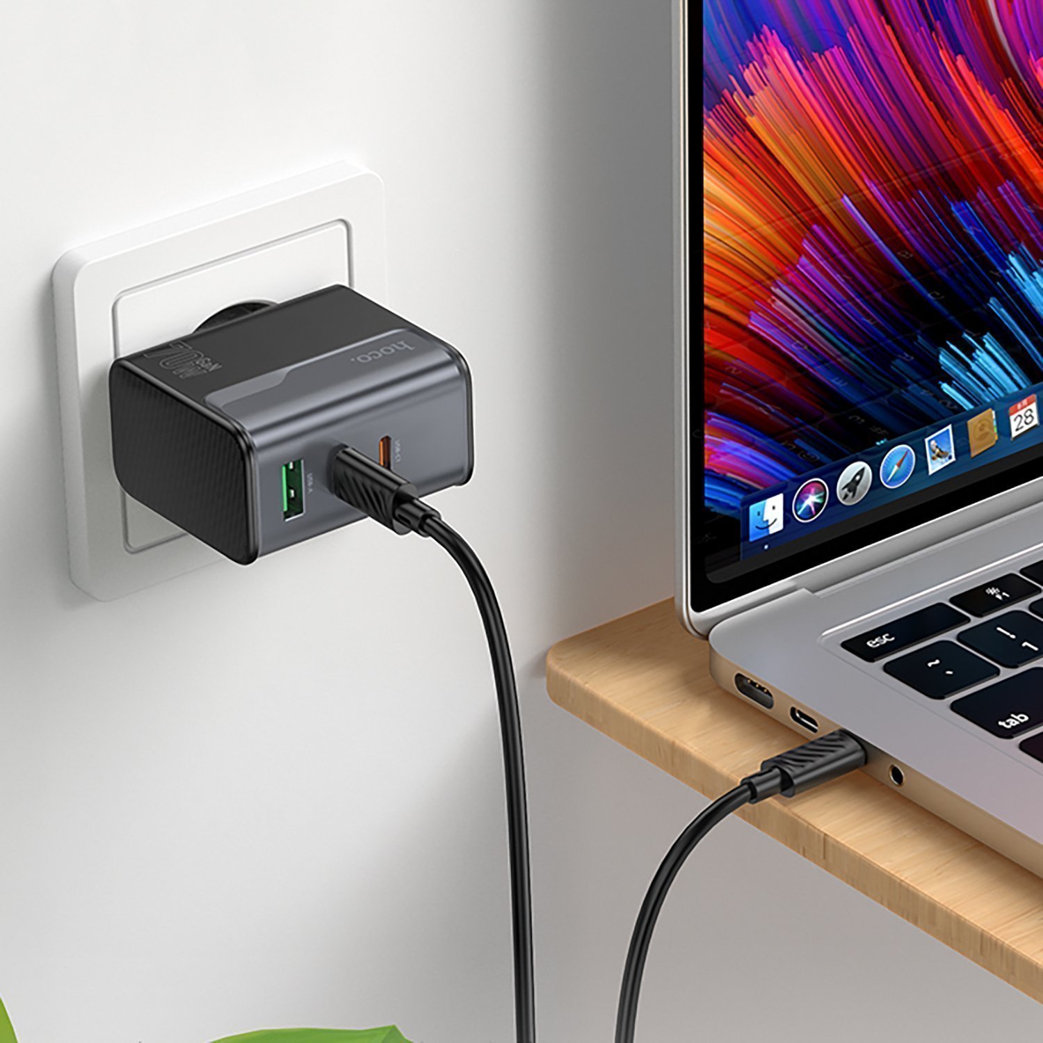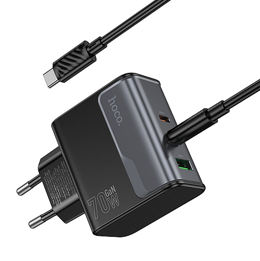 Адаптер Сетевой с кабелем Hoco CS75A Star PD+QC 2Type-C/USB 3A/70W (Type-C/Type-C)