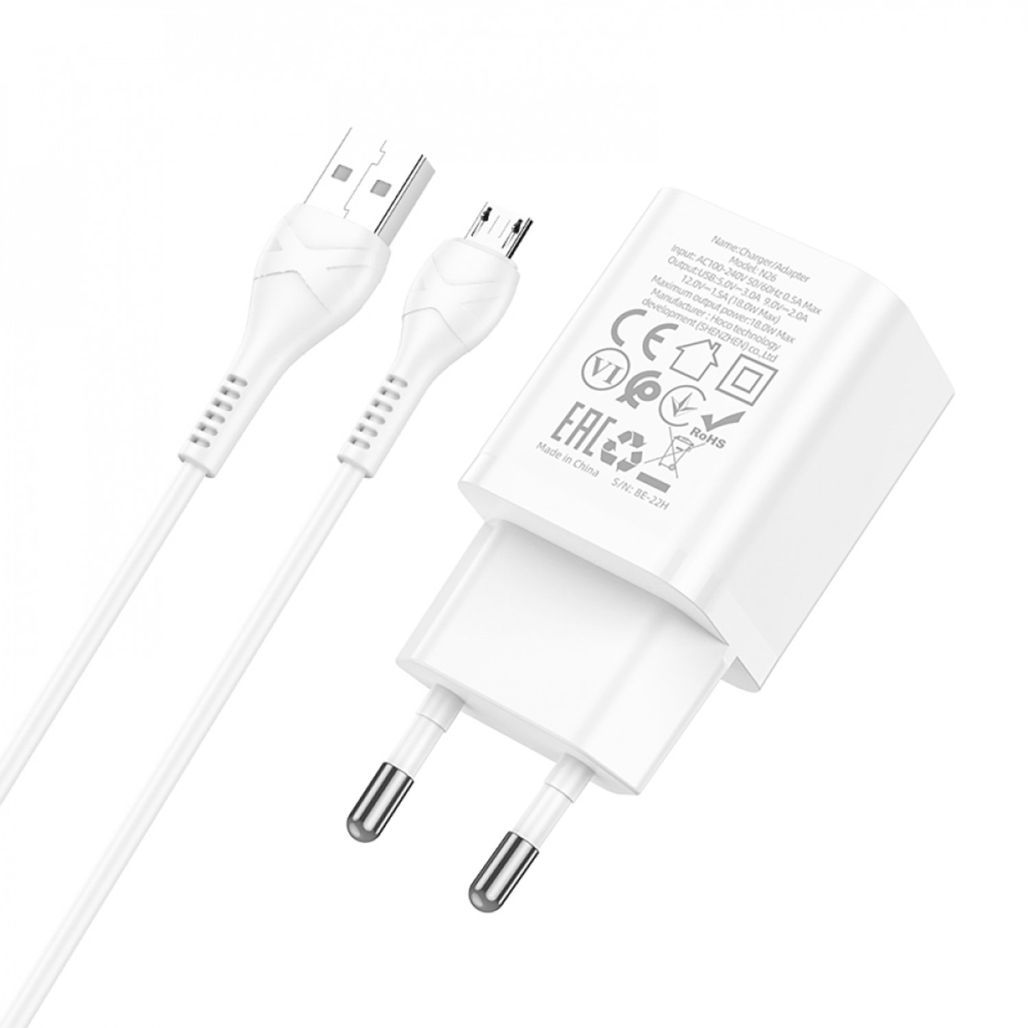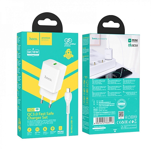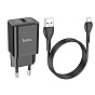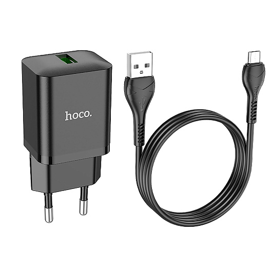 Адаптер Сетевой с кабелем Hoco N26 Maxim QC3.0 USB 18W (USB/Micro USB) (black)
