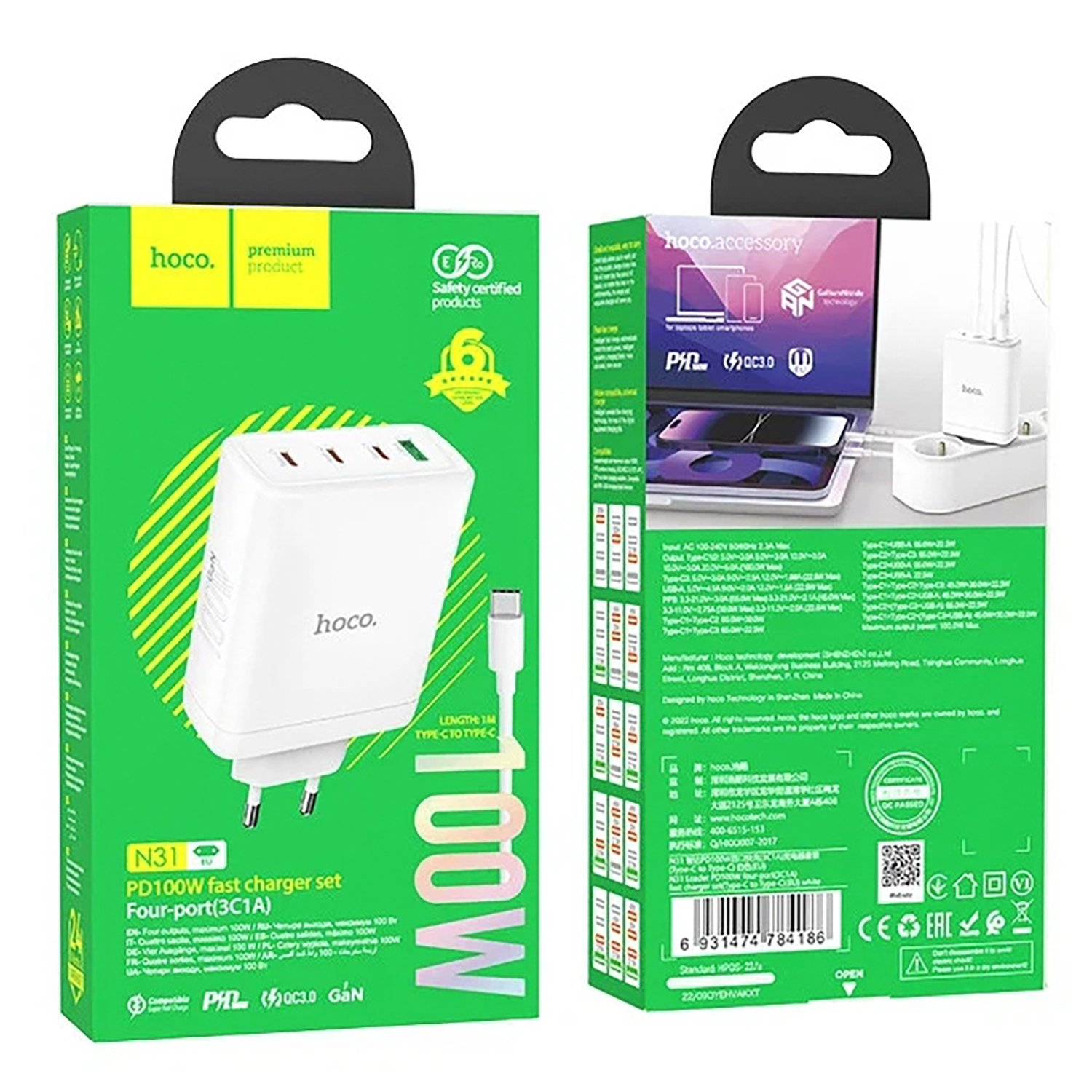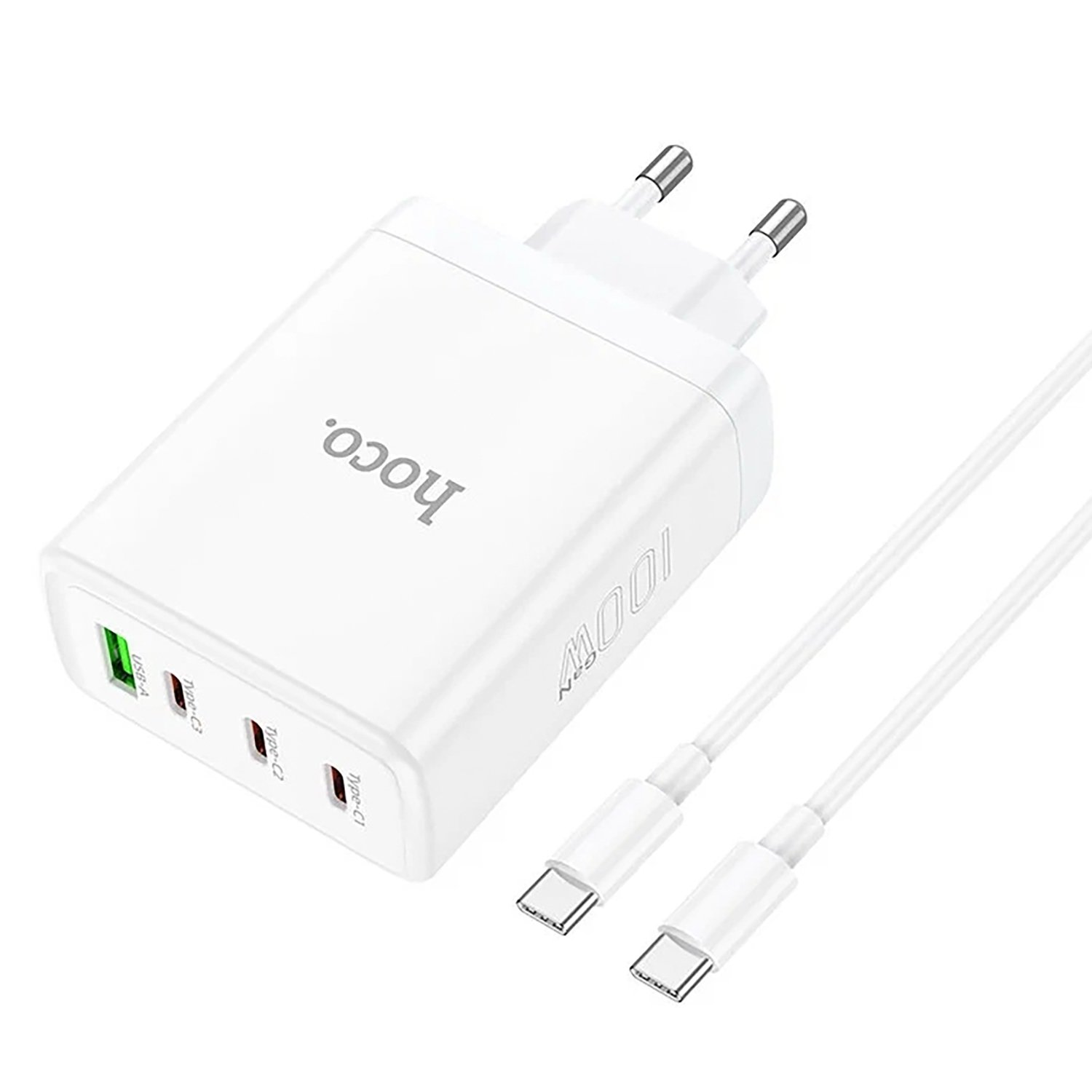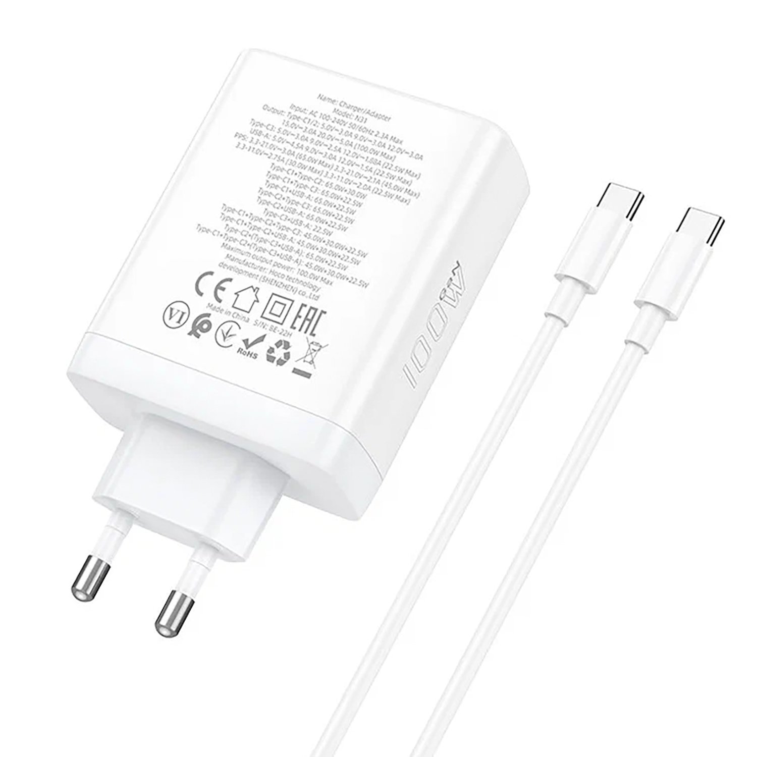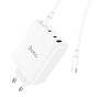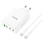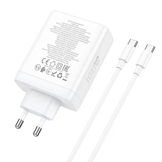 Адаптер Сетевой с кабелем Hoco N31 PD 3Type-C/USB 100W (Type-C/Type-C) (white)