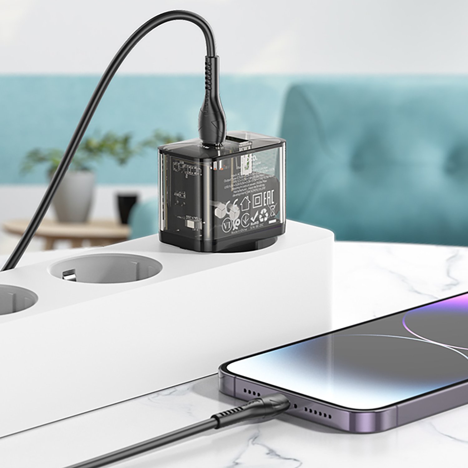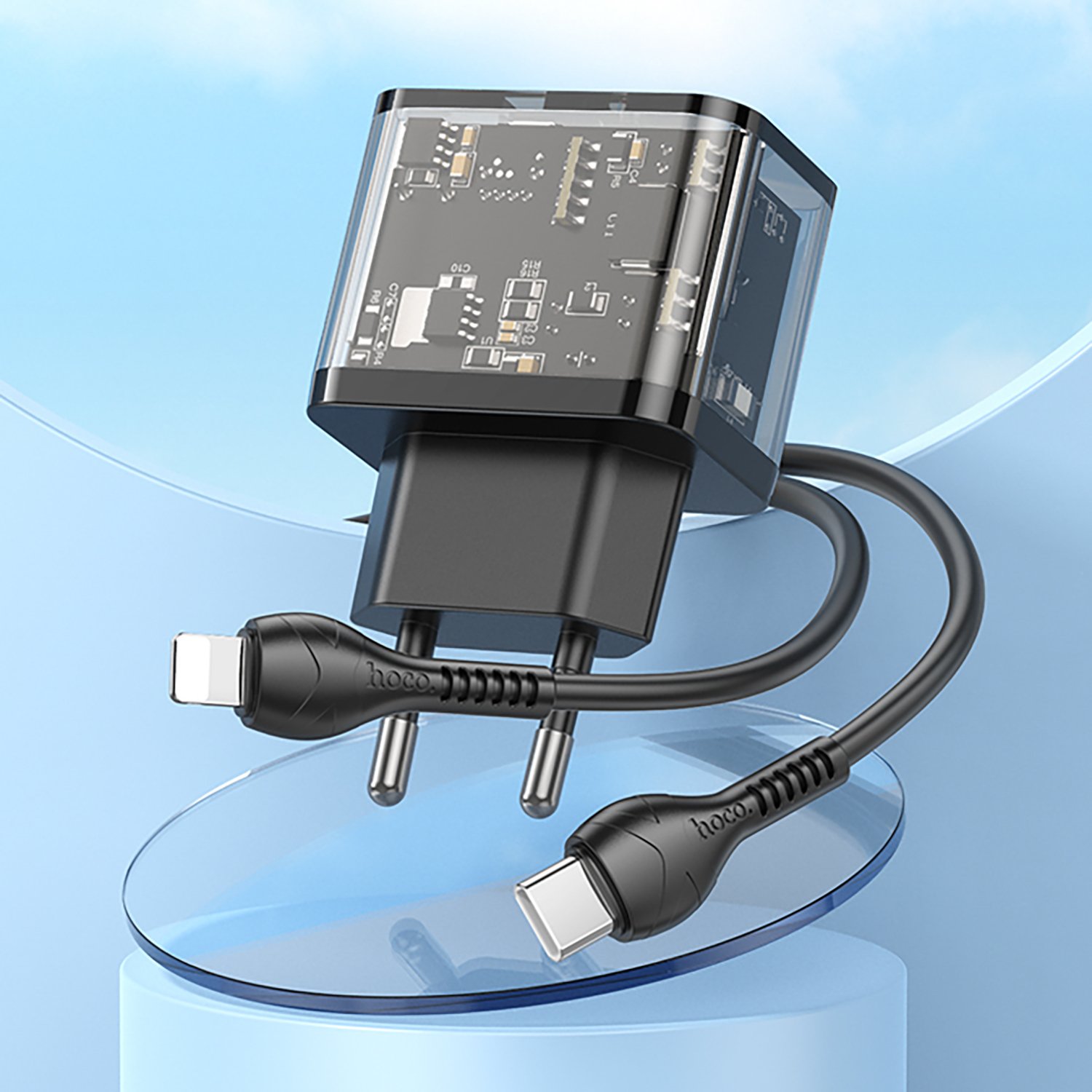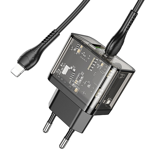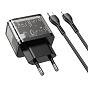Адаптер Сетевой с кабелем Hoco N34 Dazzling PD QC3.0 USB/Type-C 3A/20W (Type-C/Lightning) (black)