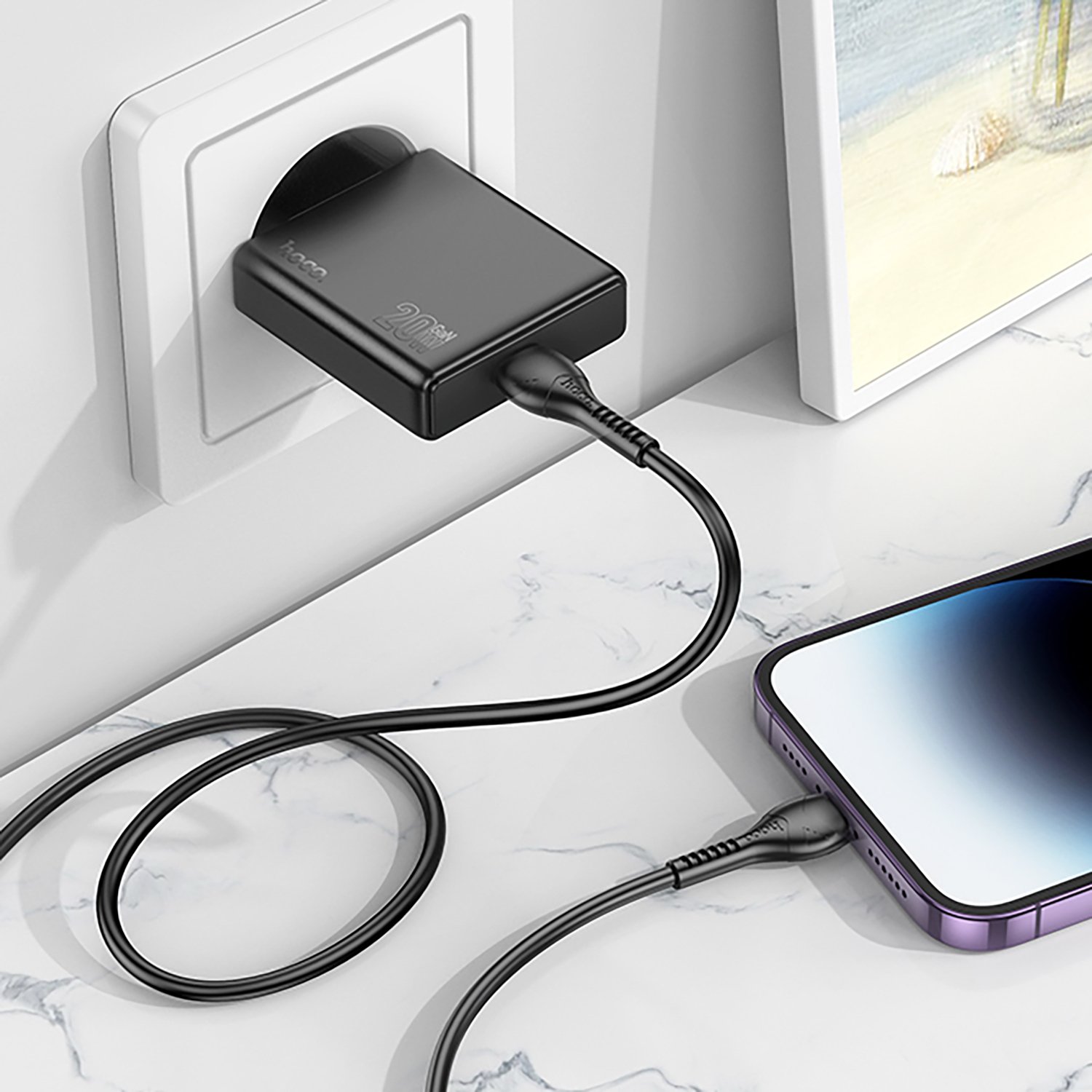 Адаптер Сетевой с кабелем Hoco N37 Delgado PD Type-C 20W (Type-C/Lightning) (black)