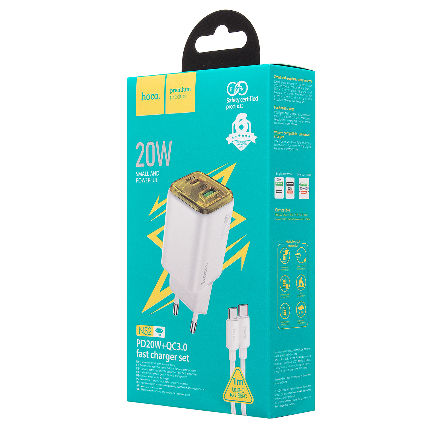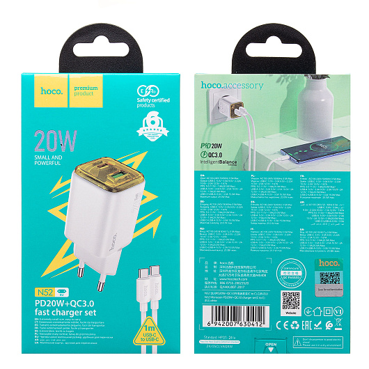 Адаптер Сетевой с кабелем Hoco N52 USB/Type-C 3A/20W (Type-C/Type-C) (white)
