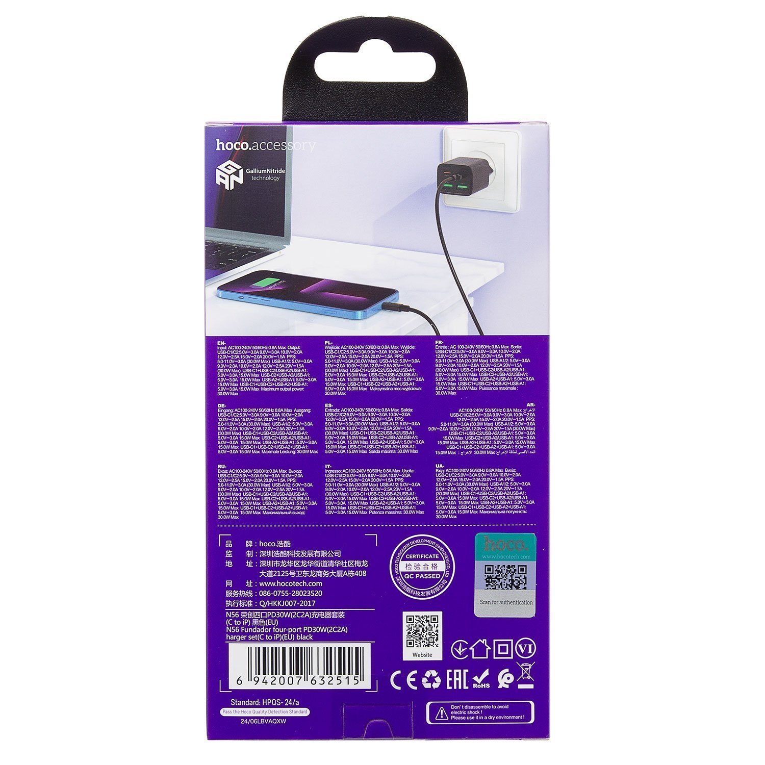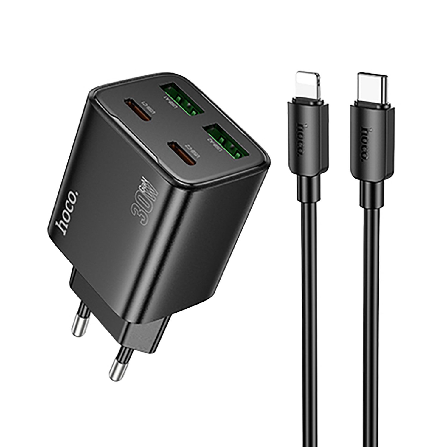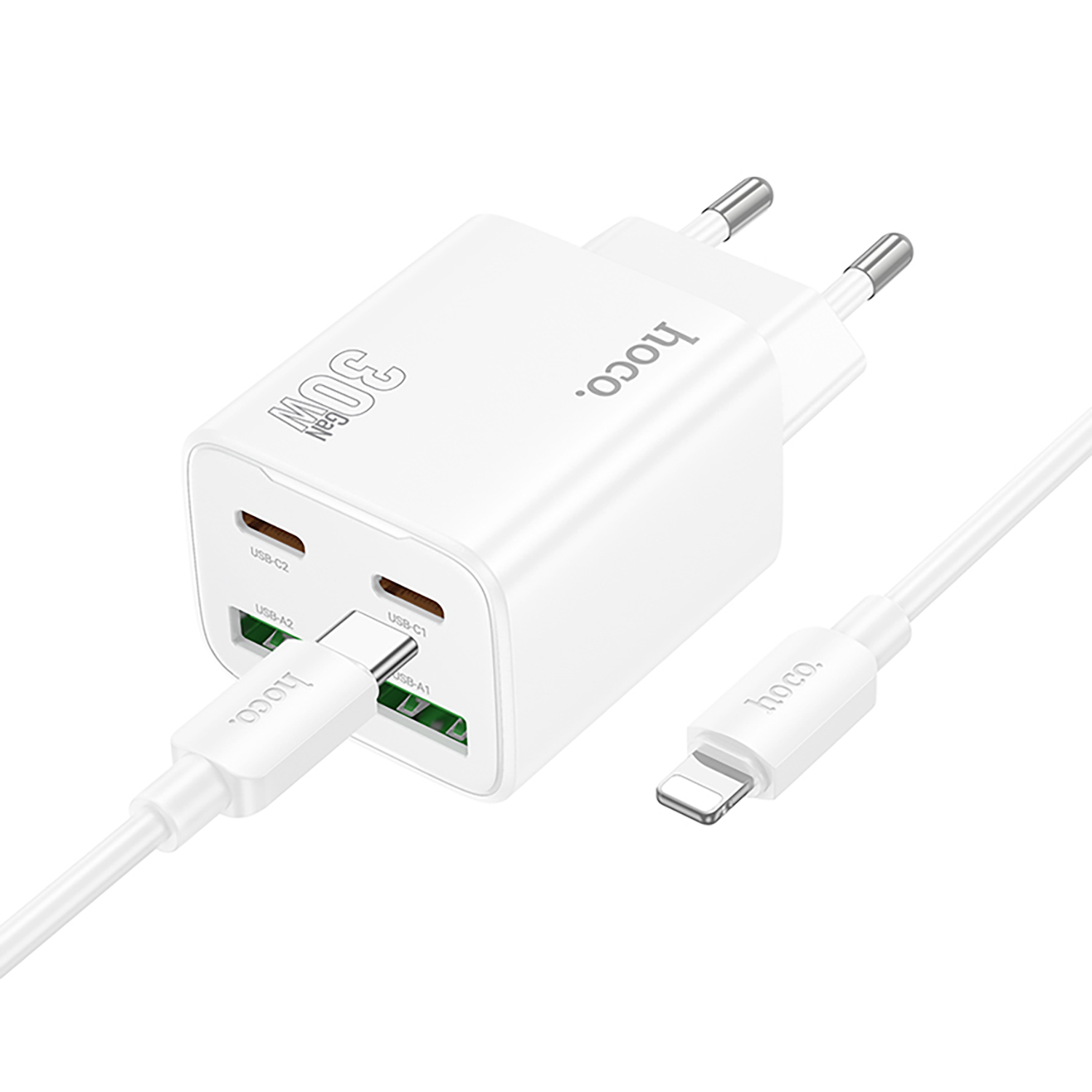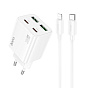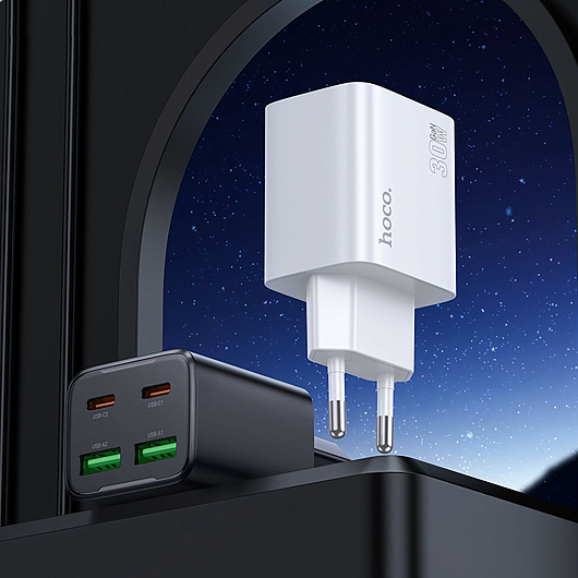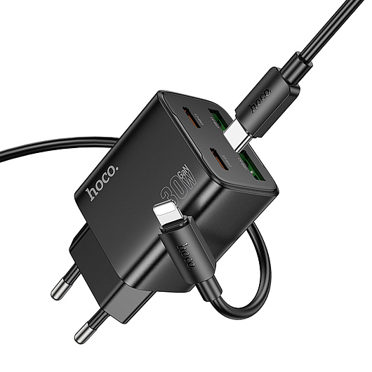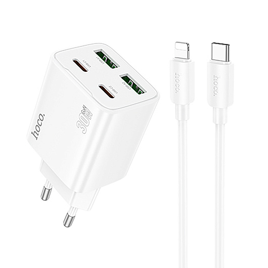 Адаптер Сетевой с кабелем Hoco N56 2Type-C/2USB 3A/30W (Type-C/Lightning) (white)