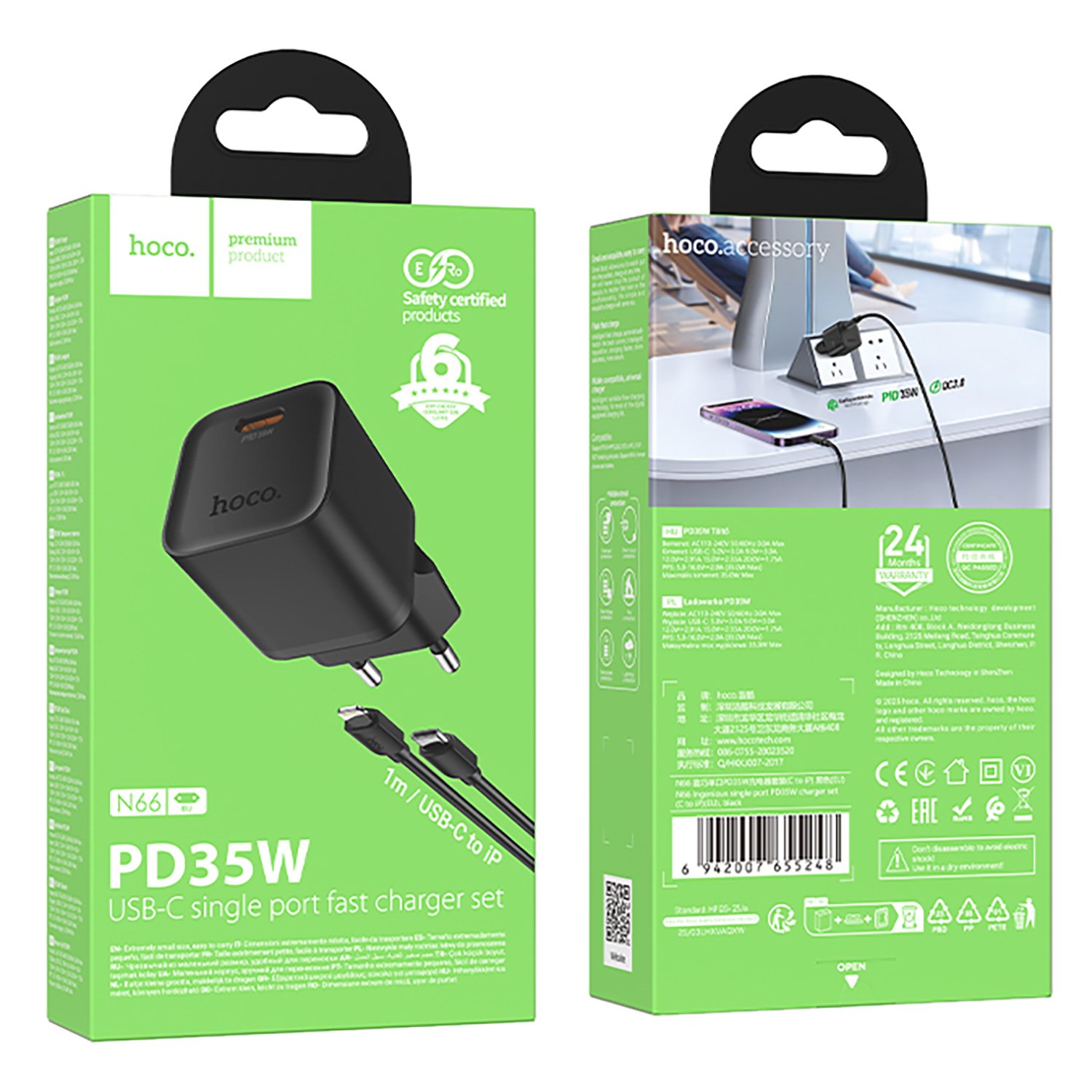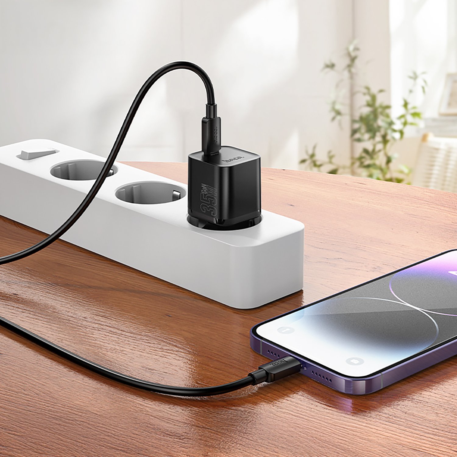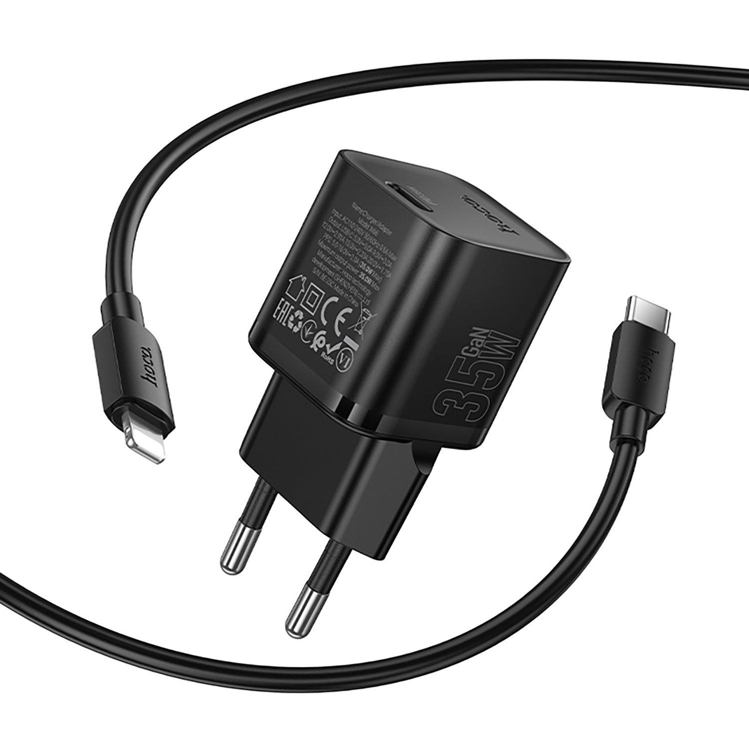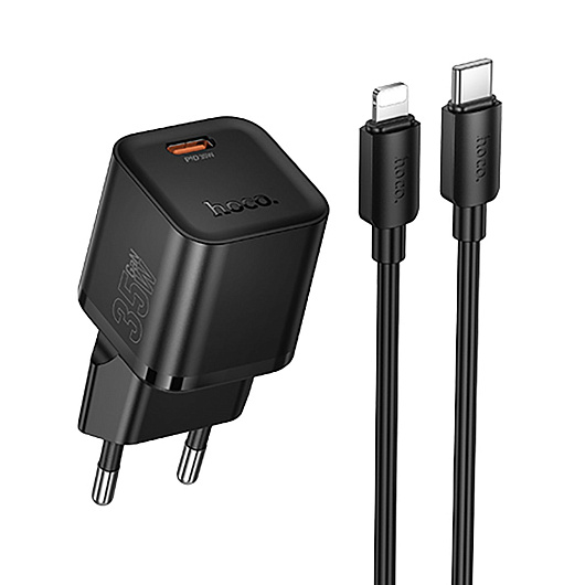 Адаптер Сетевой с кабелем Hoco N66 Ingenious PD Type-C 3A/35W (Type-C/Lightning) (black)