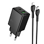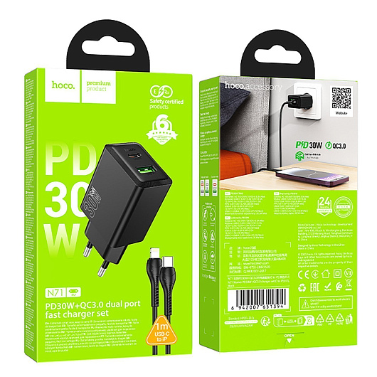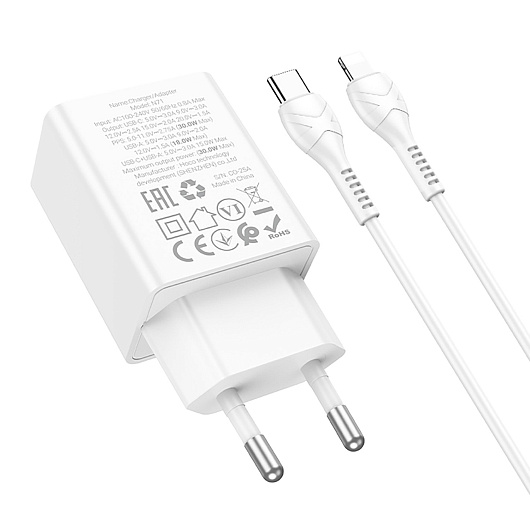 Адаптер Сетевой с кабелем Hoco N71 Nuevo PD+QC3.0 USB/Type-C 3A/30W (Type-C/Lightning) (white)