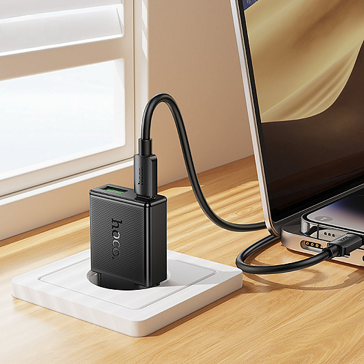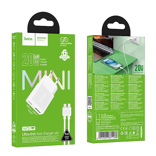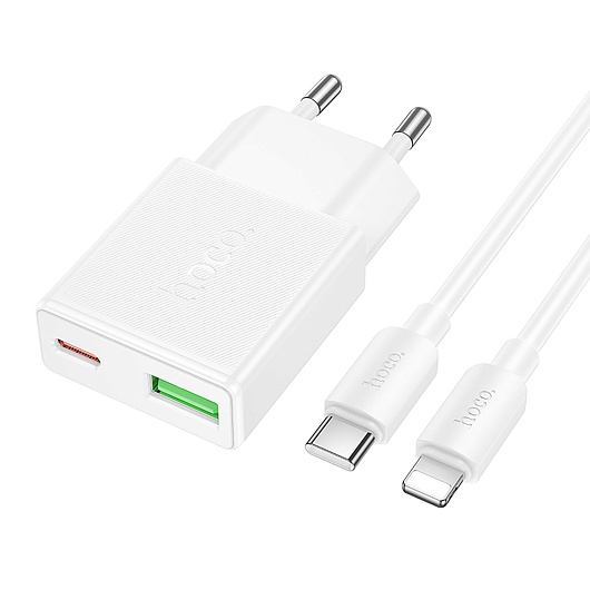 Адаптер Сетевой с кабелем Hoco N73 Mini PD+QC3.0 USB/Type-C 20W (Type-C/Lightning) (white)