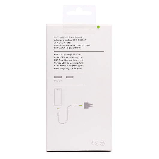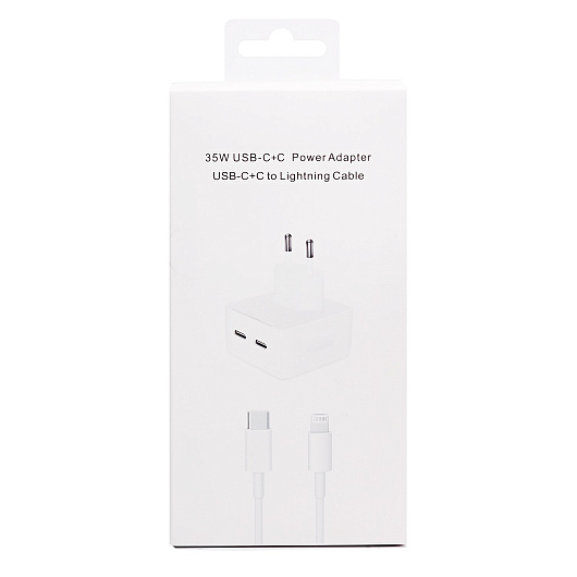 Адаптер Сетевой с кабелем - MHJE3ZM/A PD 2*Type-C 3,8A/35W (Type-C/Lightning) (C) (white)