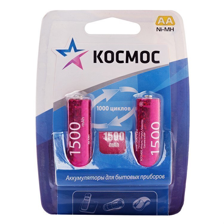 Аккумулятор AA Космос HR6 (2-BL) Ni-MH 1500 mAh (24/288)