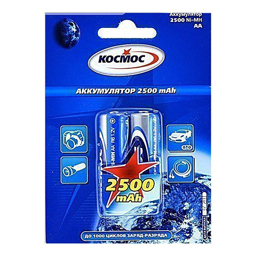 Аккумулятор AA Космос HR6 (2-BL) Ni-MH 2500 mAh (24/288)