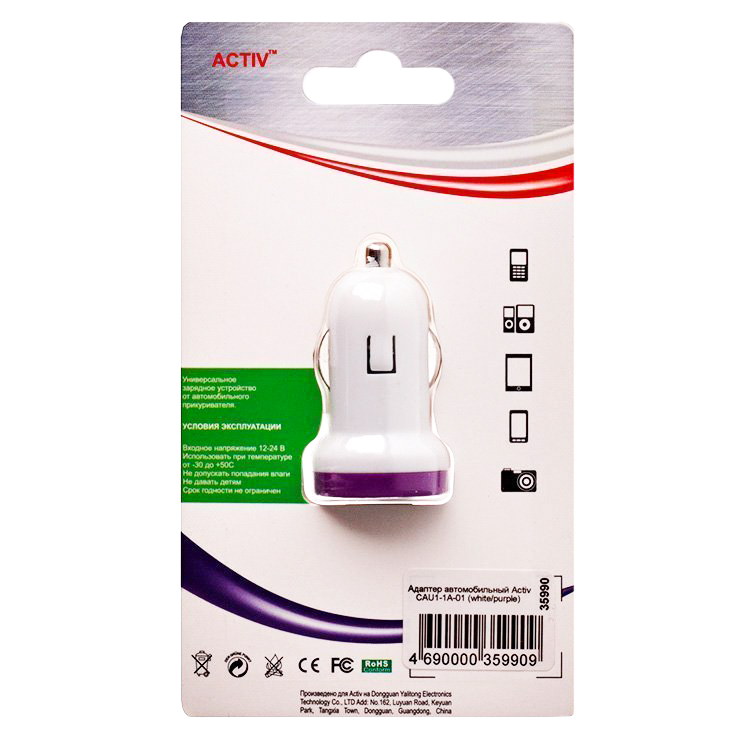 Адаптер Автомобильный Activ CAU1-1A-01 1USB/5V/1A (black/blue) ..