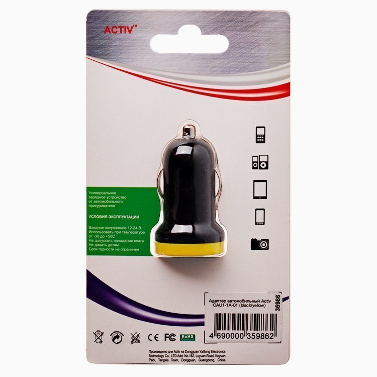 Адаптер Автомобильный Activ CAU1-1A-01 1USB/5V/1A (white/blue) ..
