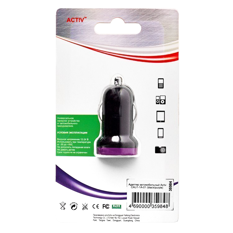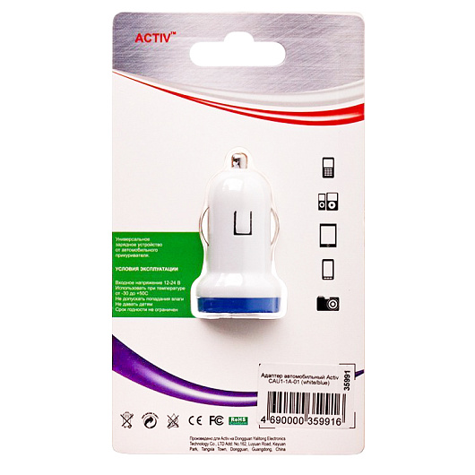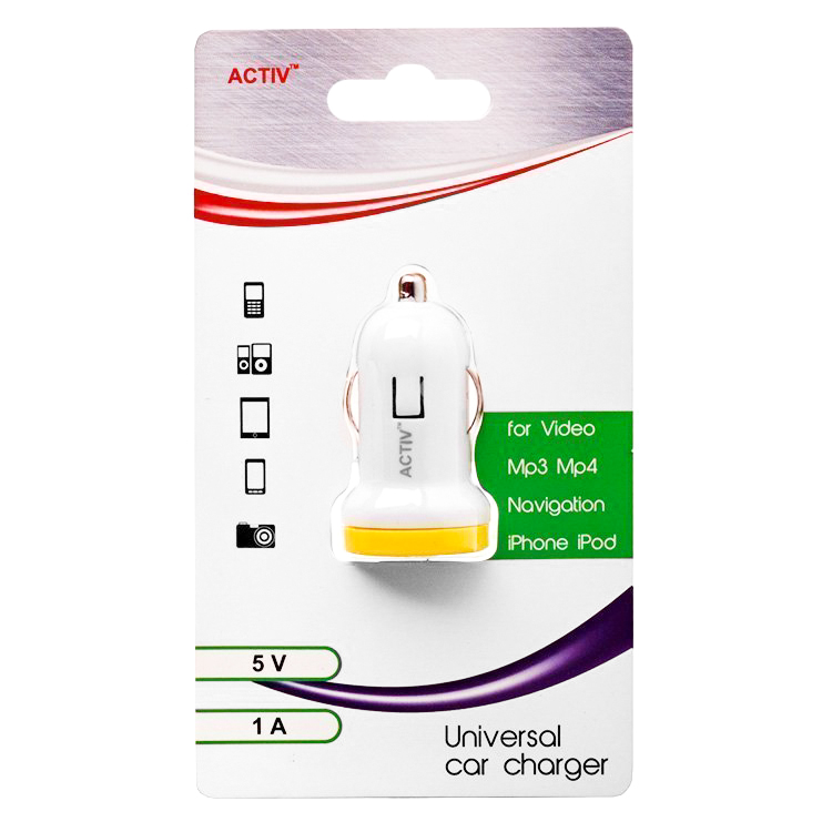 Адаптер Автомобильный Activ CAU1-1A-01 1USB/5V/1A (white) ..