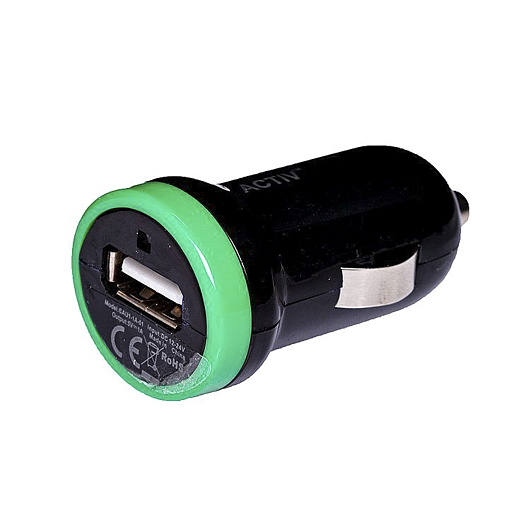 Адаптер Автомобильный Activ Clean Line CAU1-1A-01 1USB/5V/1A (black/green) ..