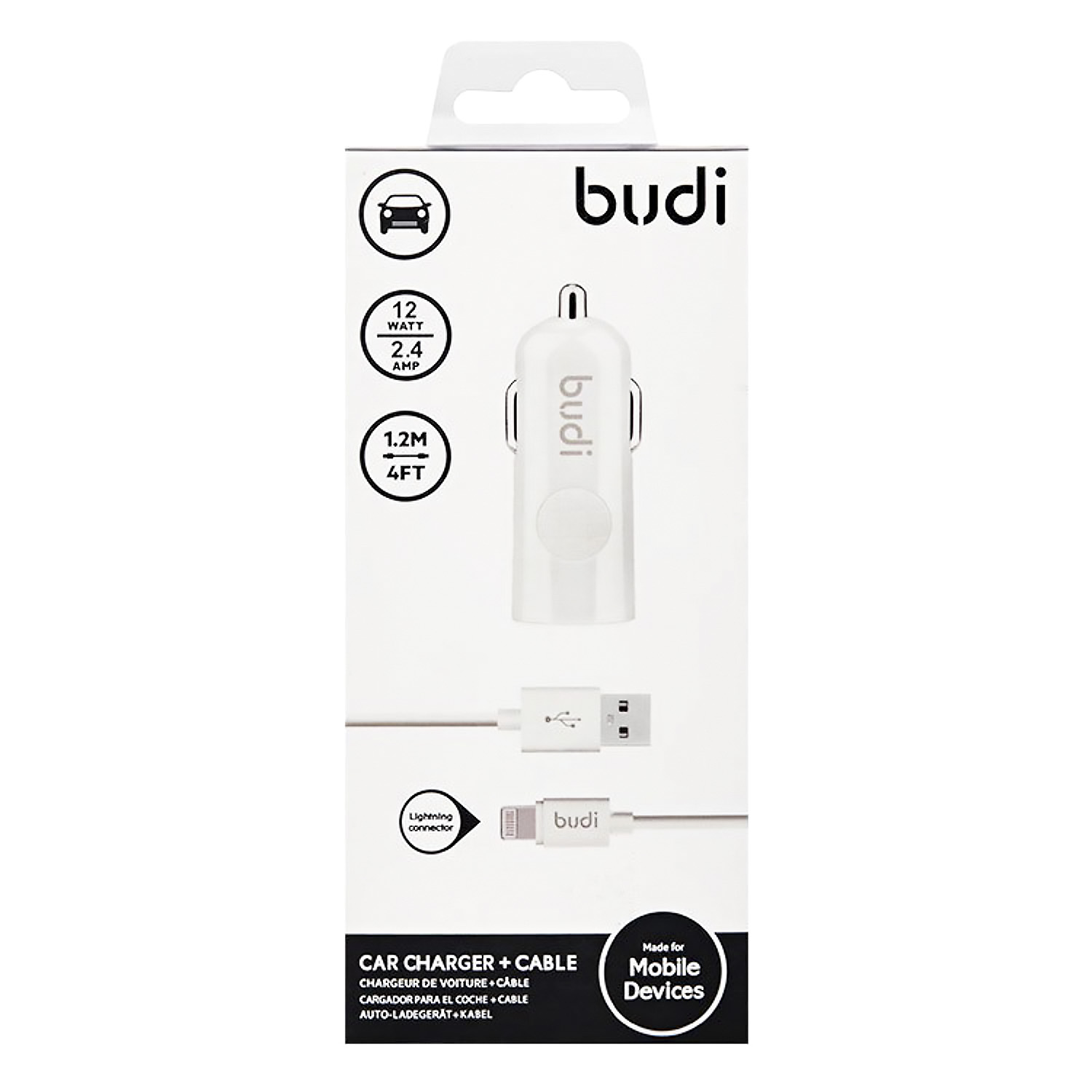 Адаптер Автомобильный с кабелем budi M8J062L 1USB/5V/2.4A +lightning (white)