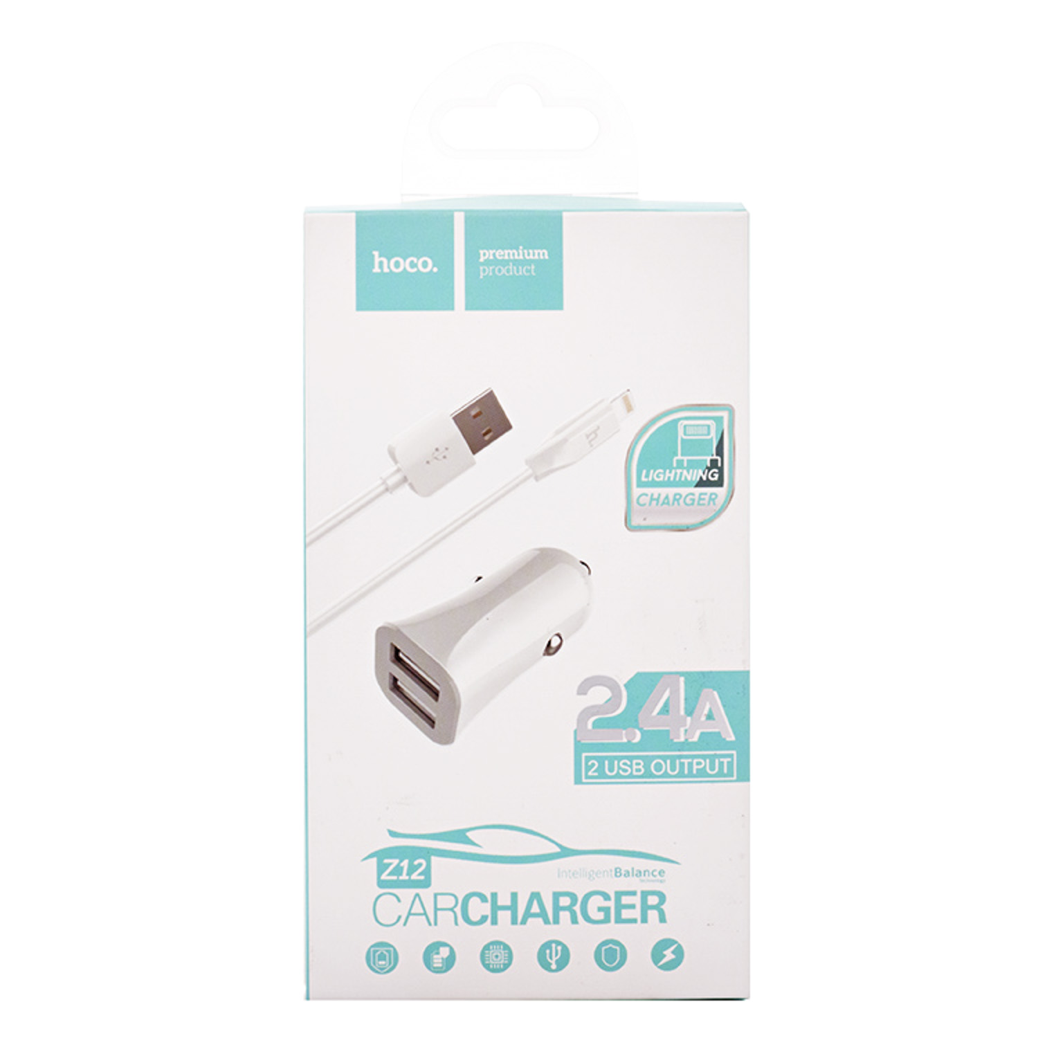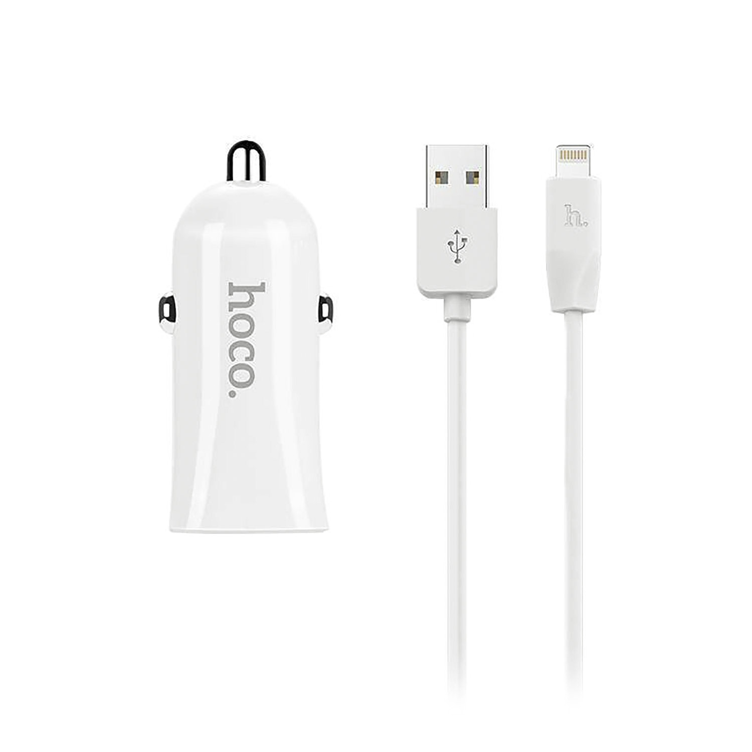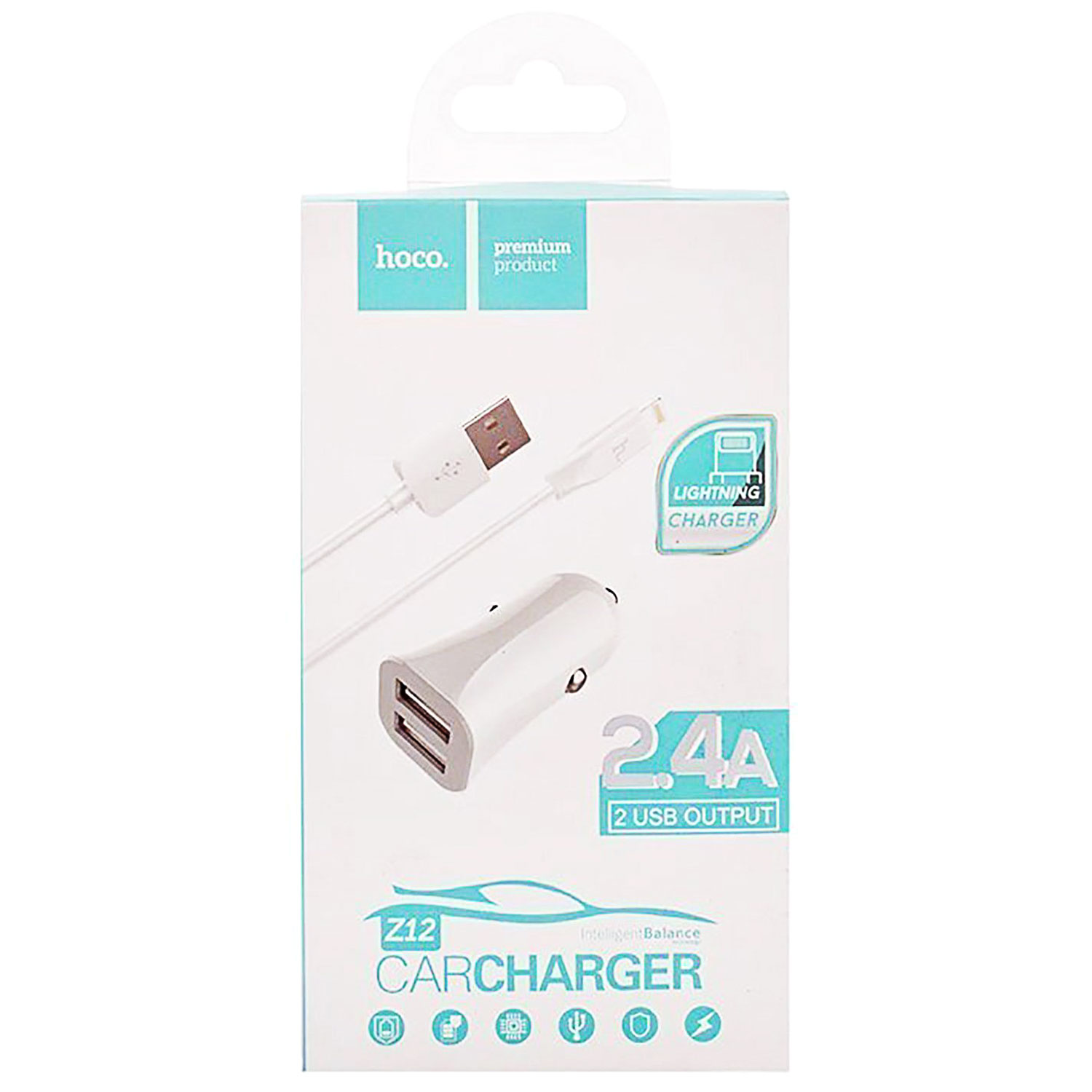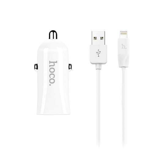 Адаптер Автомобильный с кабелем Hoco Z12 2USB/5V/2.4A +lightning (white)