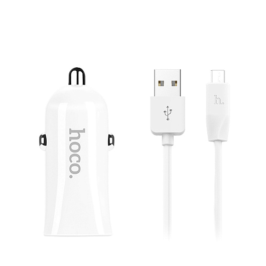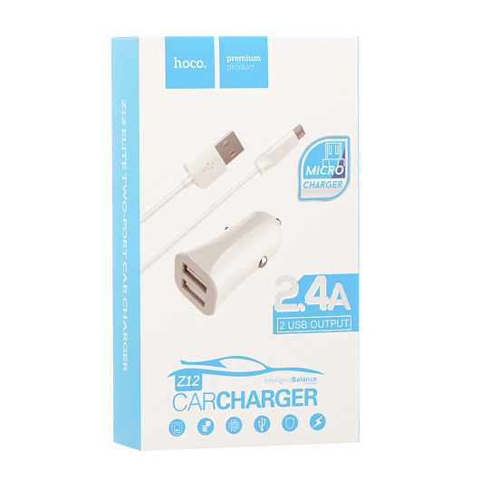 Адаптер Автомобильный с кабелем Hoco Z12 2USB/5V/2.4A +micro USB (white)