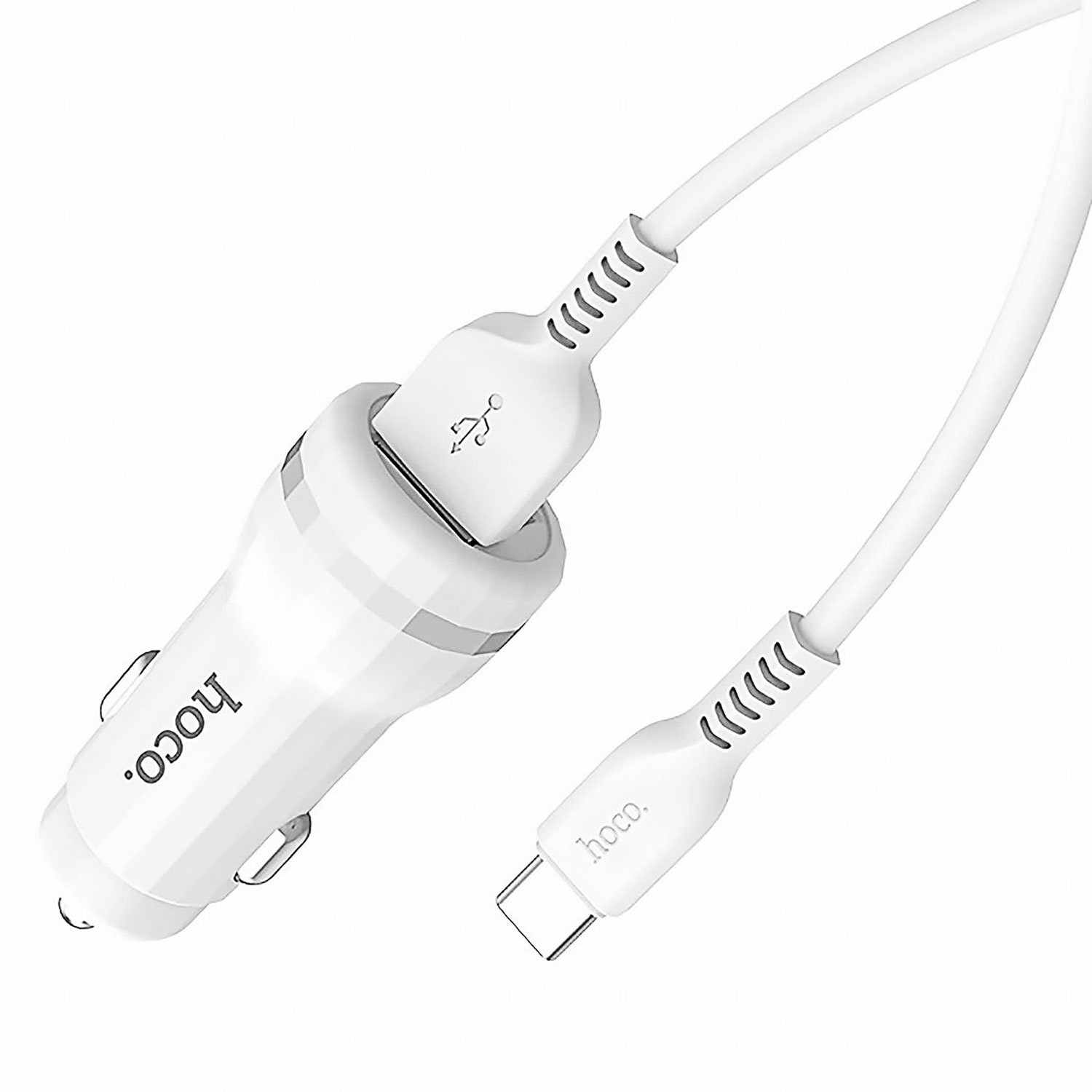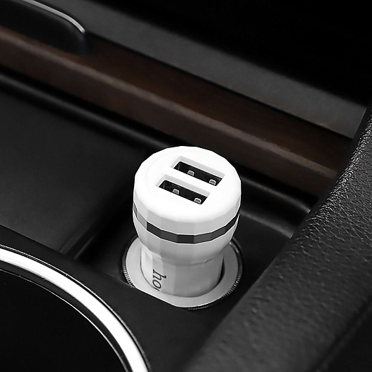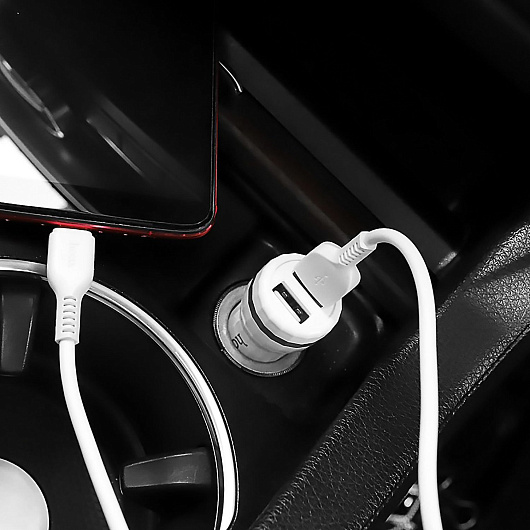 Адаптер Автомобильный с кабелем Hoco Z27 2USB/5V/2.4A +Type-C (white)