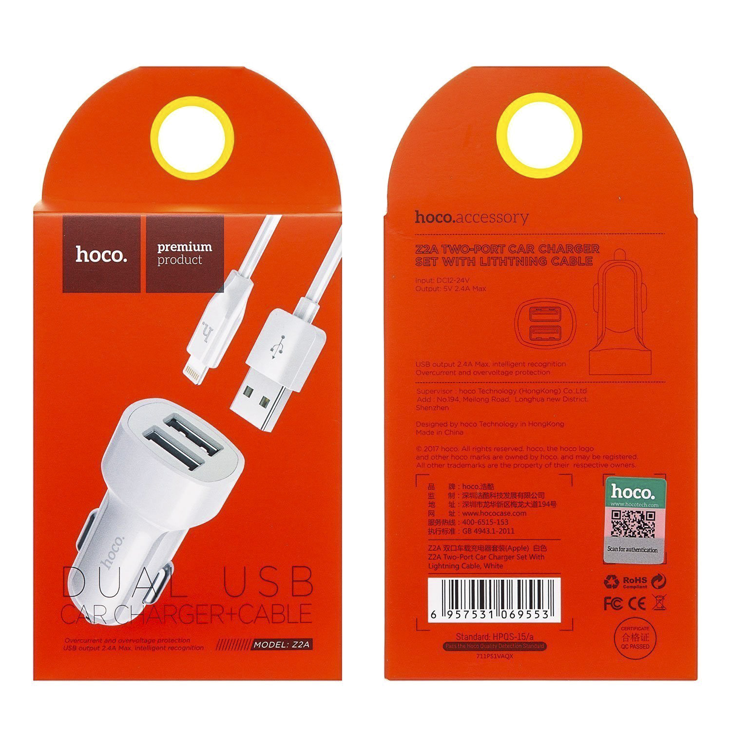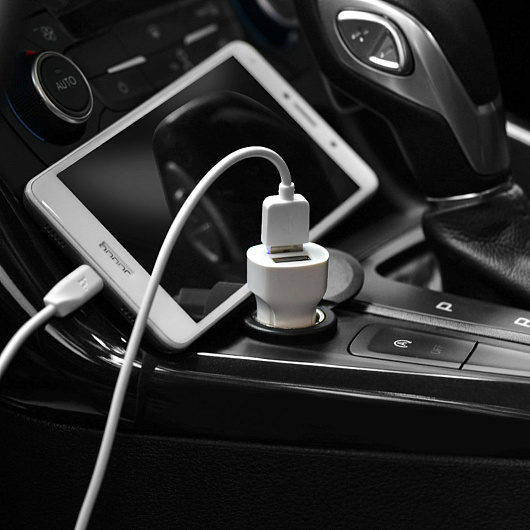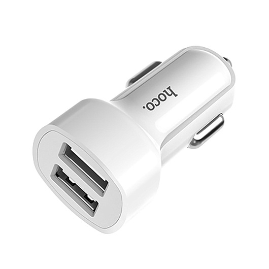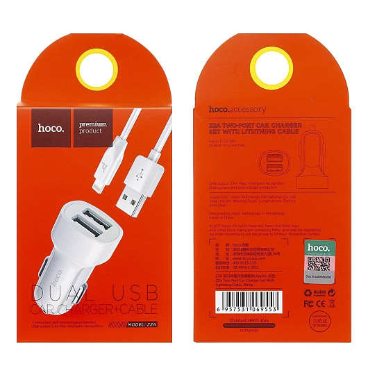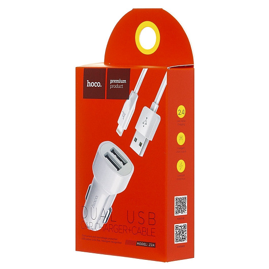 Адаптер Автомобильный с кабелем Hoco Z2A 2USB/5V/2.4A +lightning (white)