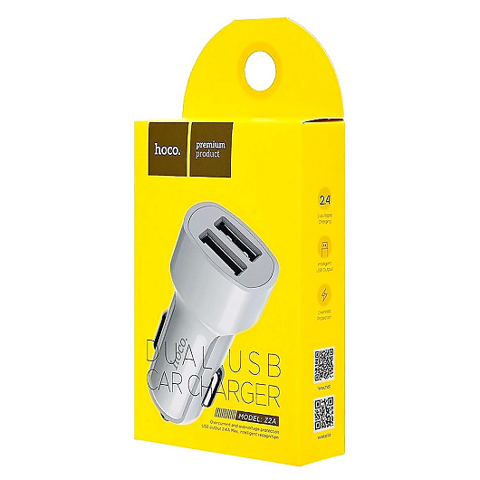Адаптер Автомобильный Hoco Z2A 2USB/5V/2.4A (white)