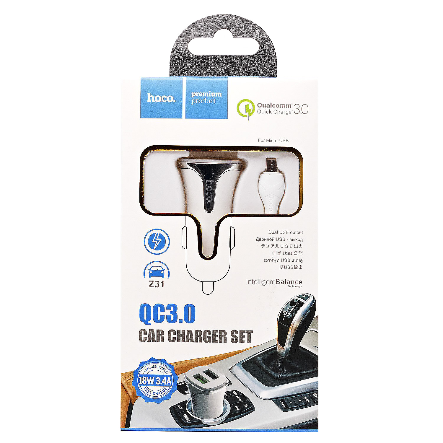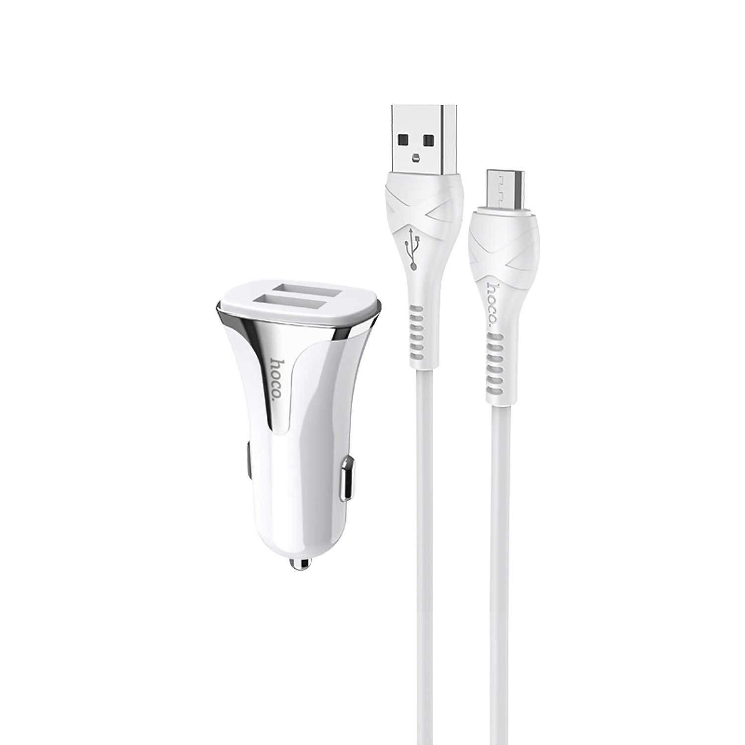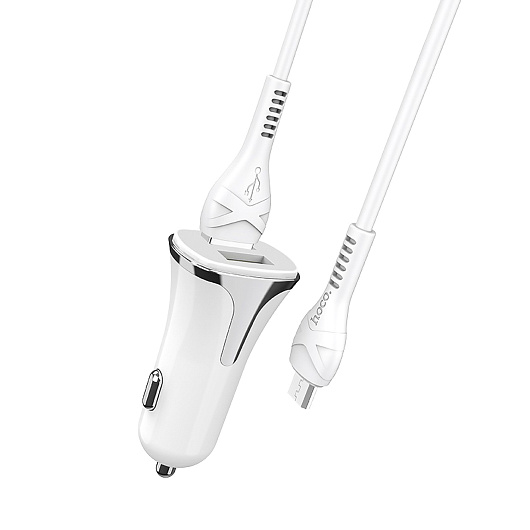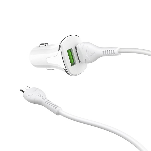 Адаптер Автомобильный с кабелем Hoco Z31 2USB/5V/3.4A QC3.0 +micro USB (white)